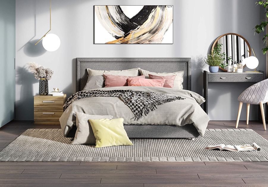 Ориентируйтесь на сочетаемость обивки и дизайнерских элементов кровати со стилем спальни. Учтите каждую мелочь – благородные стразы, пуговицы, вертикальные строчки, пиковки и другие декоративные приемы. А чтобы внести в интерьер современный дух, завершите его дерзким акцентом, например яркой репродукцией или панно.