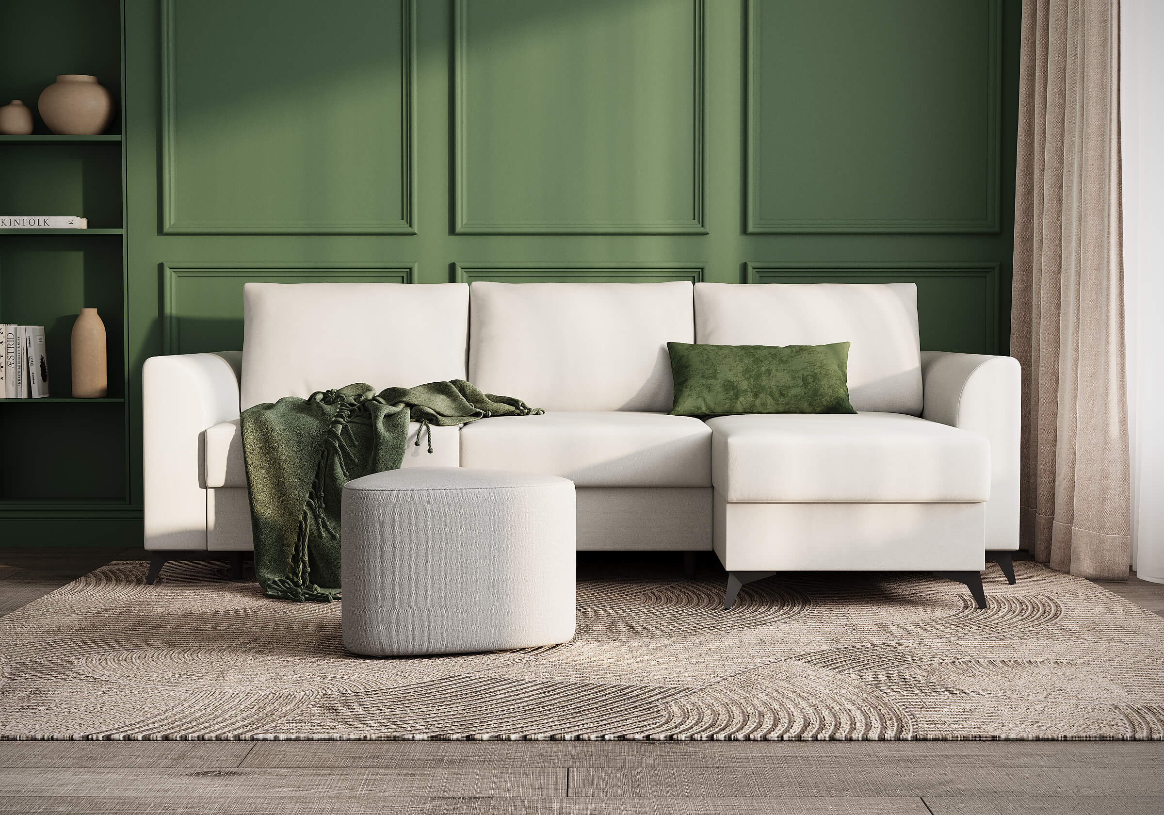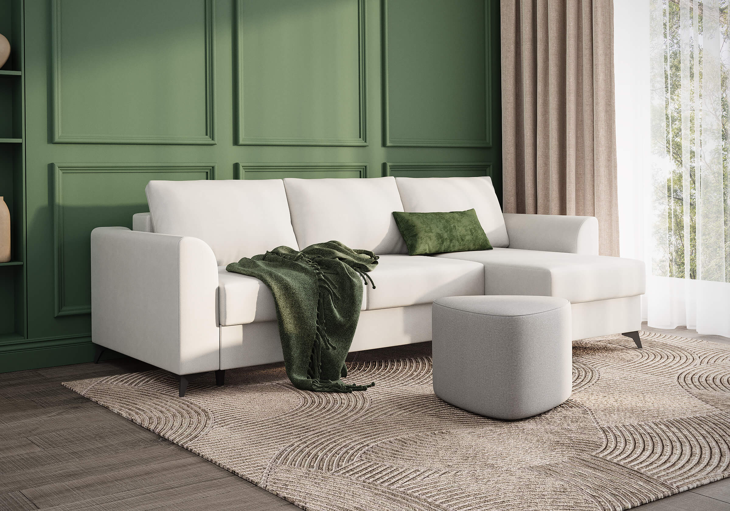 Угловой диван Dario — это сочетание лаконичного дизайна, продуманной эргономики и непревзойденного комфорта. Плавные линии, дизайнерские подлокотники и стильные металлические ножки создают выразительный силуэт, который станет ключевым элементом гостиной. Универсальная конструкция позволяет собрать конфигурацию под ваше пространство — левую или правую. Диван не только красив, но и практичен: независимый пружинный блок в сочетании с высокоэластичной пеной в составе матраса обеспечивает комфортное место для сна и отдыха. Глубина и высота сидений гарантируют удобство в повседневной эксплуатации. Вместительный бельевой короб позволяет эффективно использовать пространство и хранить постельные принадлежности или другие вещи. Практичная обивка и продуманная высота спинки защитят стены, сохраняя безупречный вид вашего интерьера.