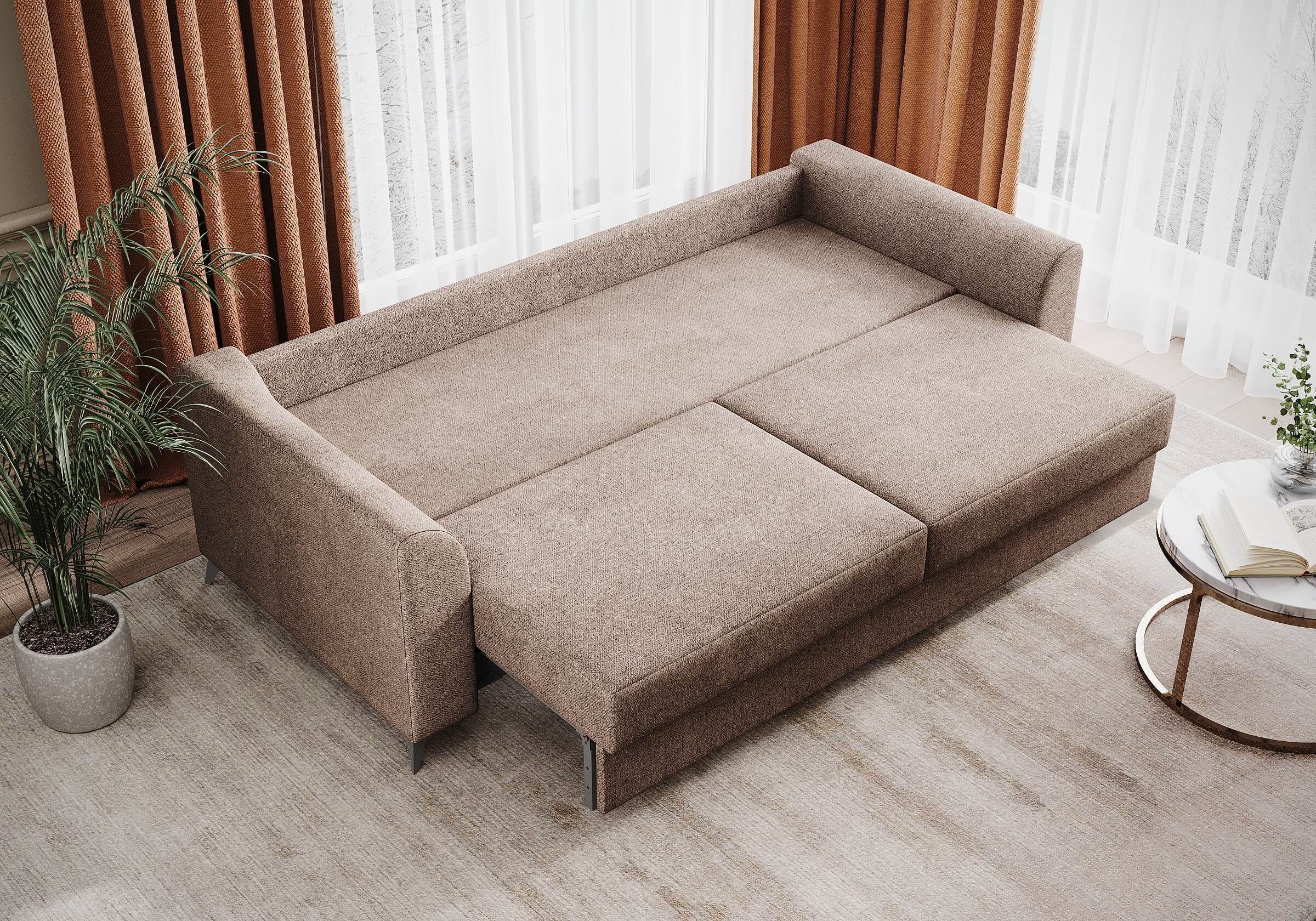 Высокие черные металлические ножки придают дивану не только устойчивость, но и особую выразительность. Этот элемент дизайна подчеркивает современный стиль мебели, добавляя ей уникального шарма и элегантности.