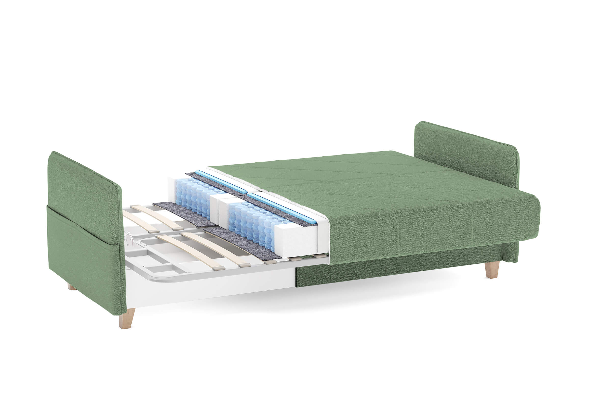 Высокие опоры из натурального дерева. Просвет над полом способствует легкой уборке под диваном, в том числе роботом-пылесосом