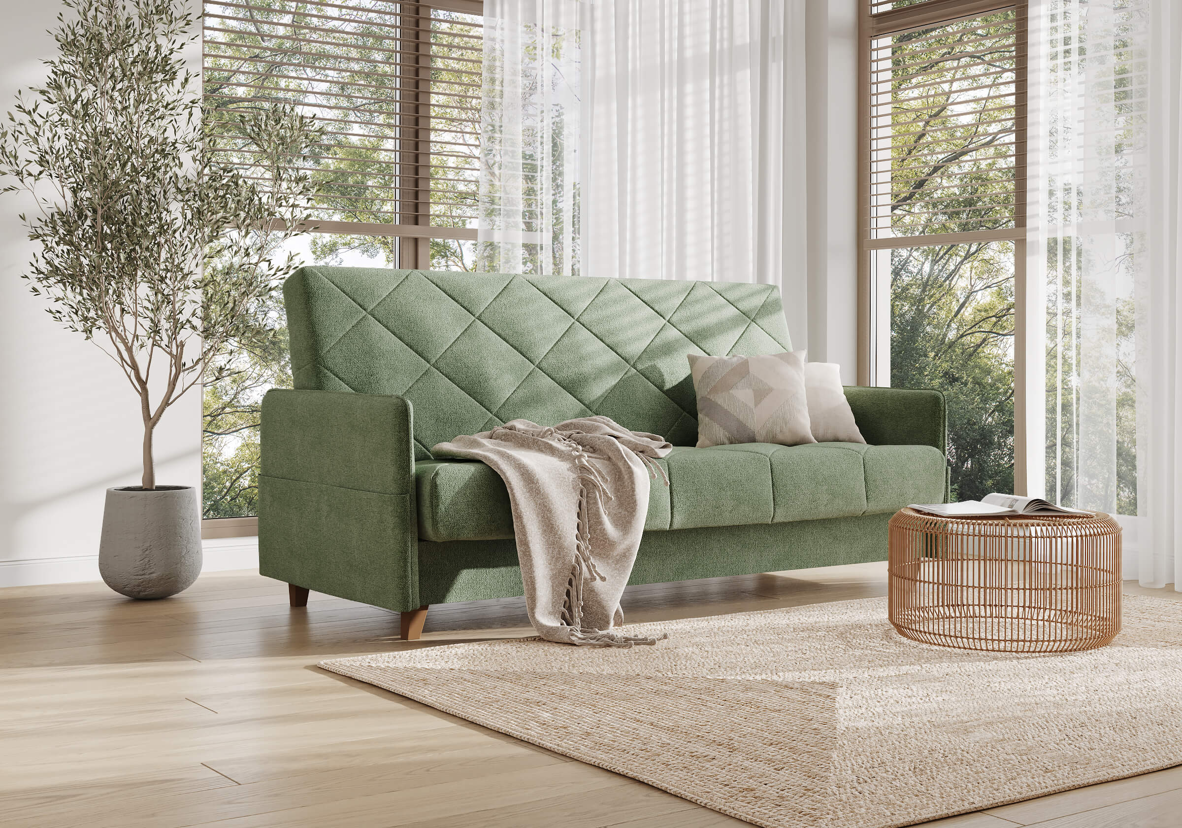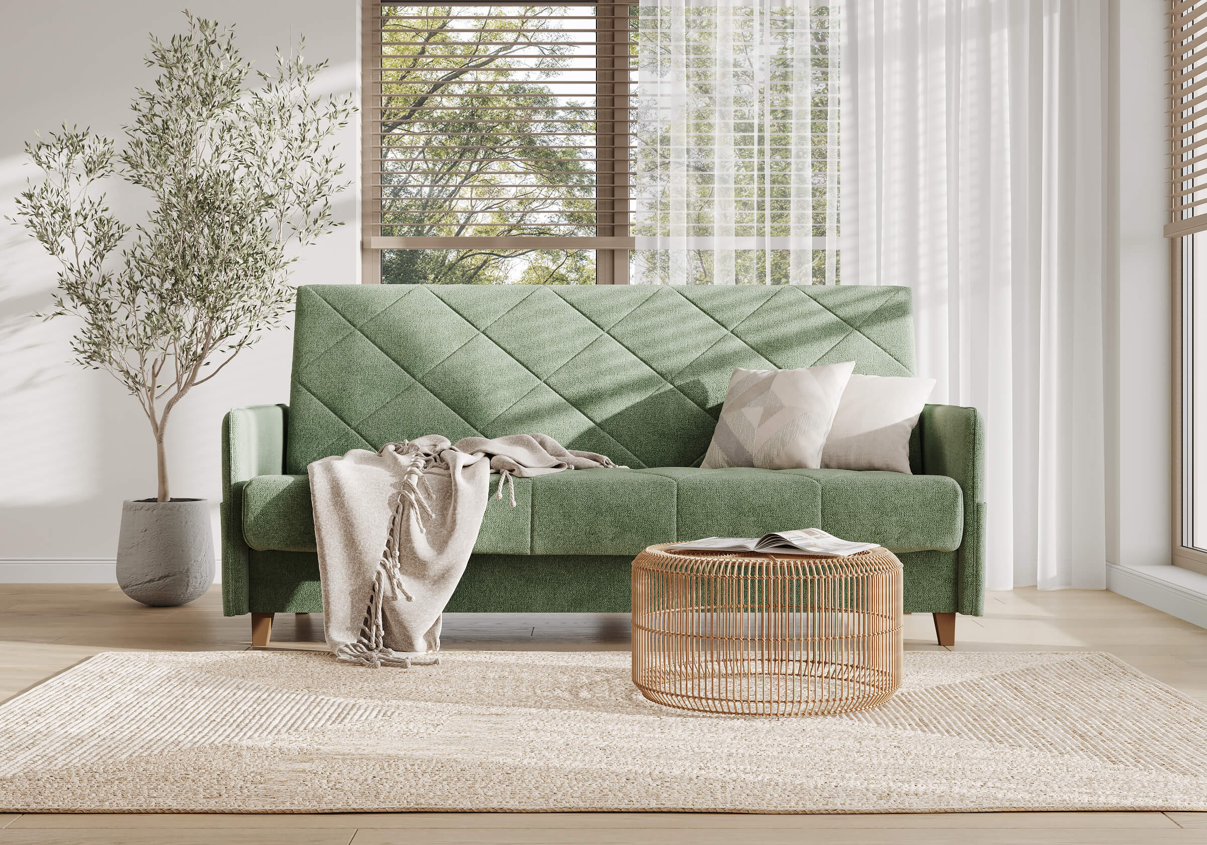 Красивый раскладной диван, понравились ткань и цвет. Животных дома нет, с момента покупки прошло полгода, а он до сих пор как новый. Отлично разбирается, внутри хороший матрас.