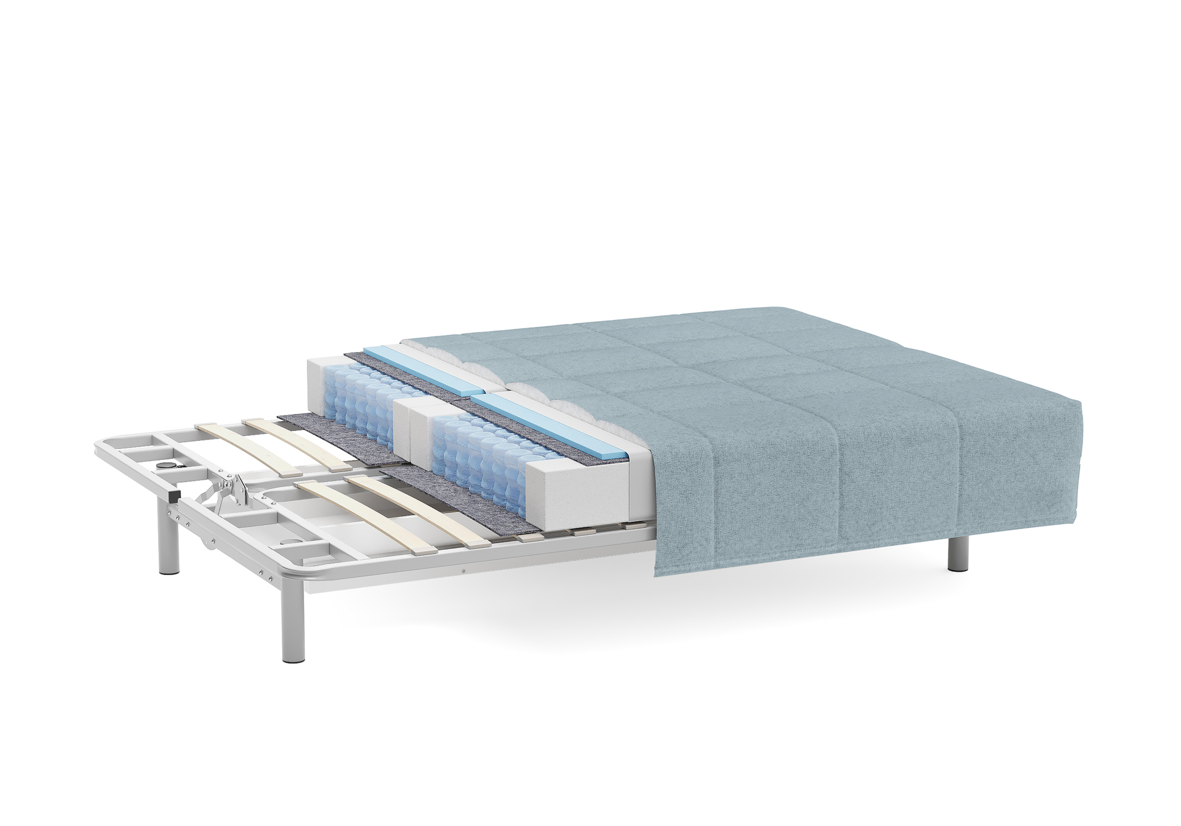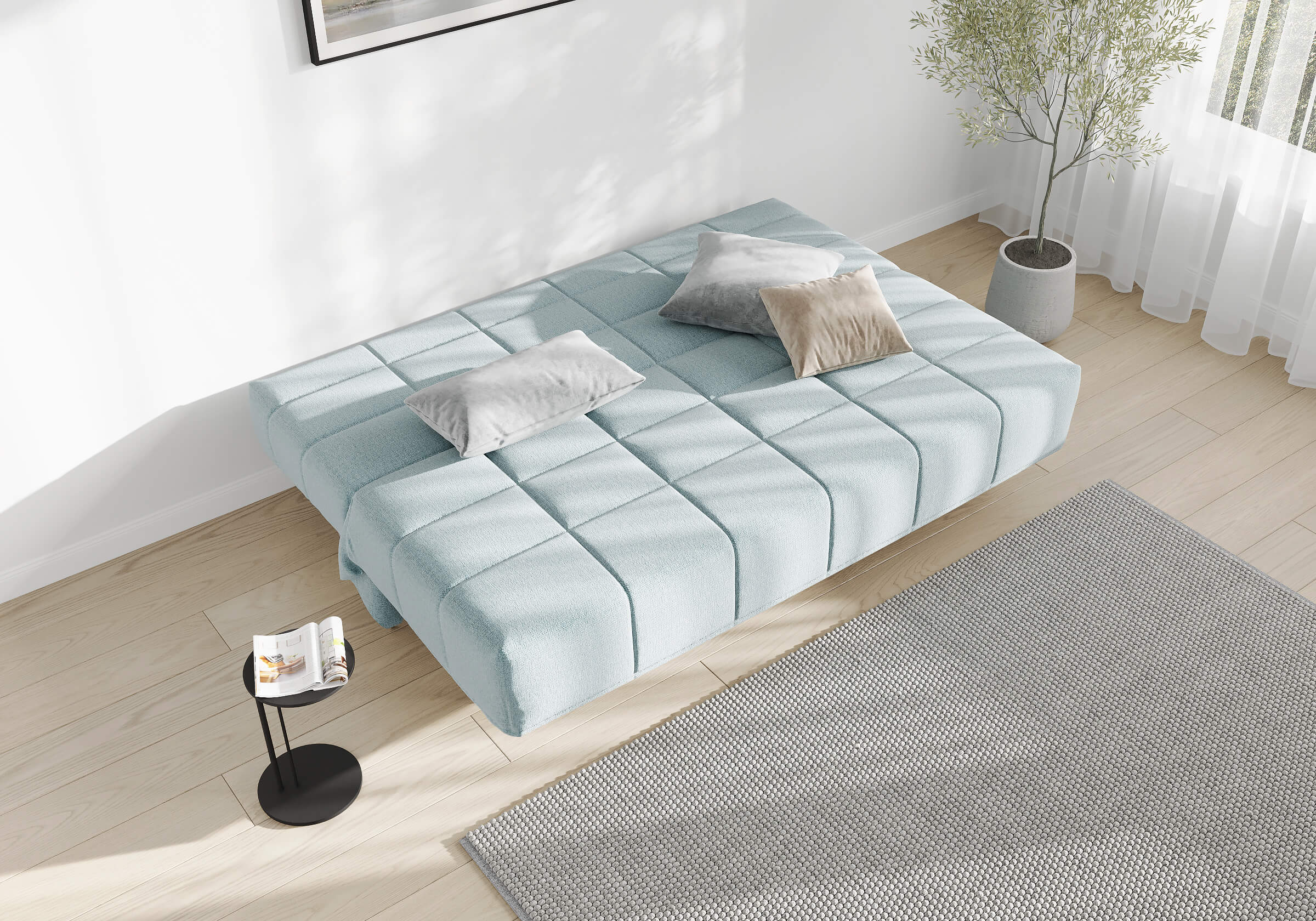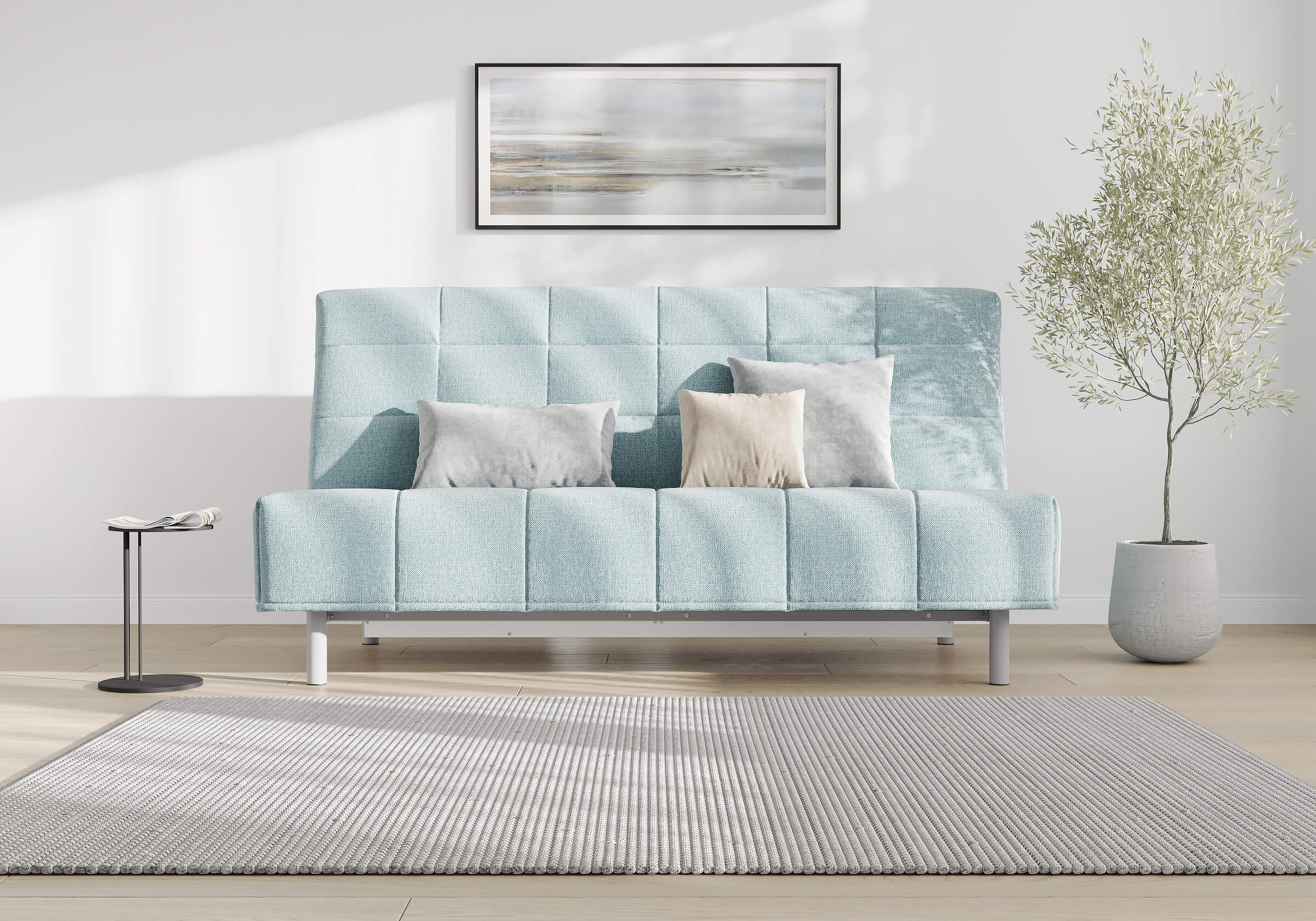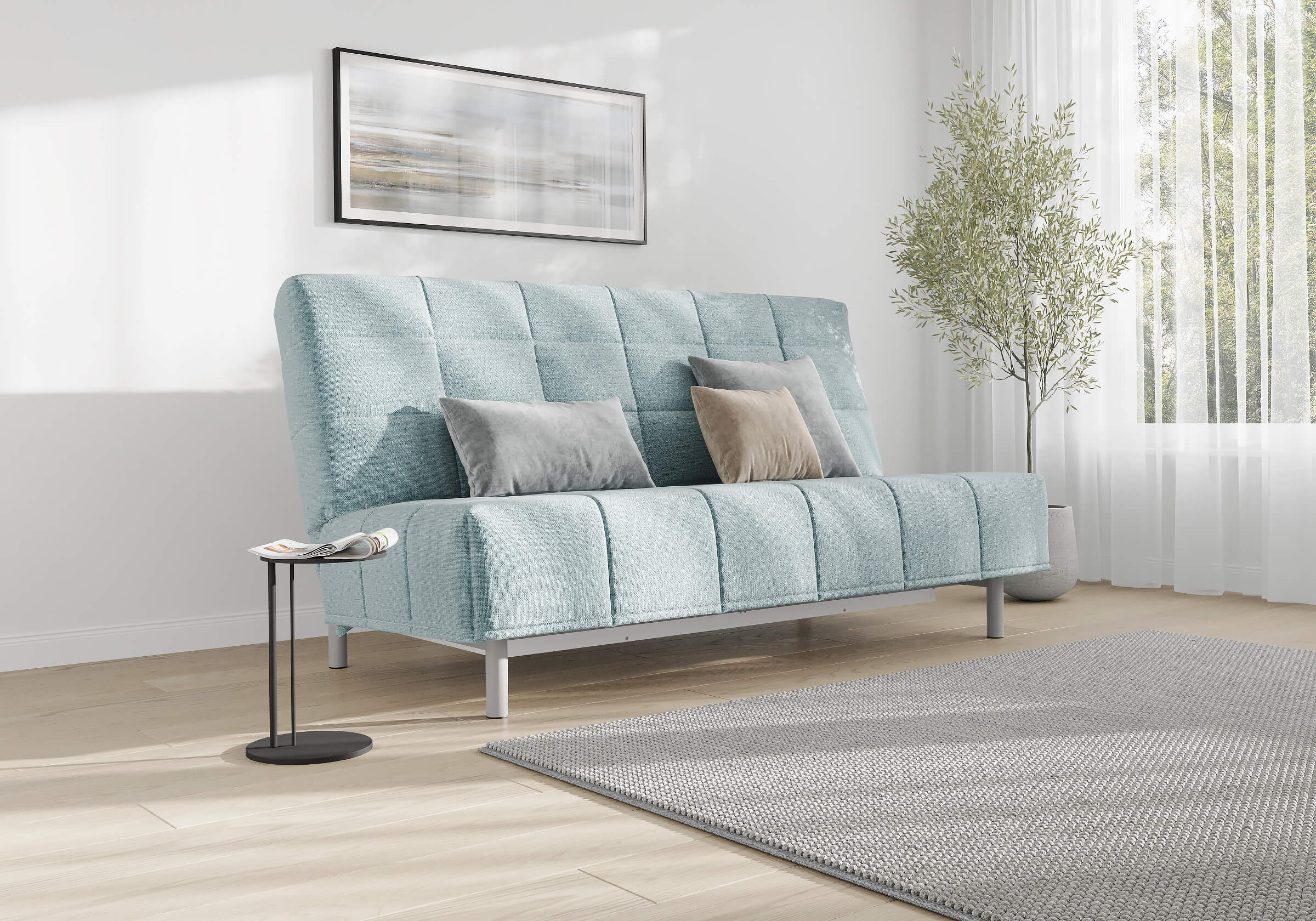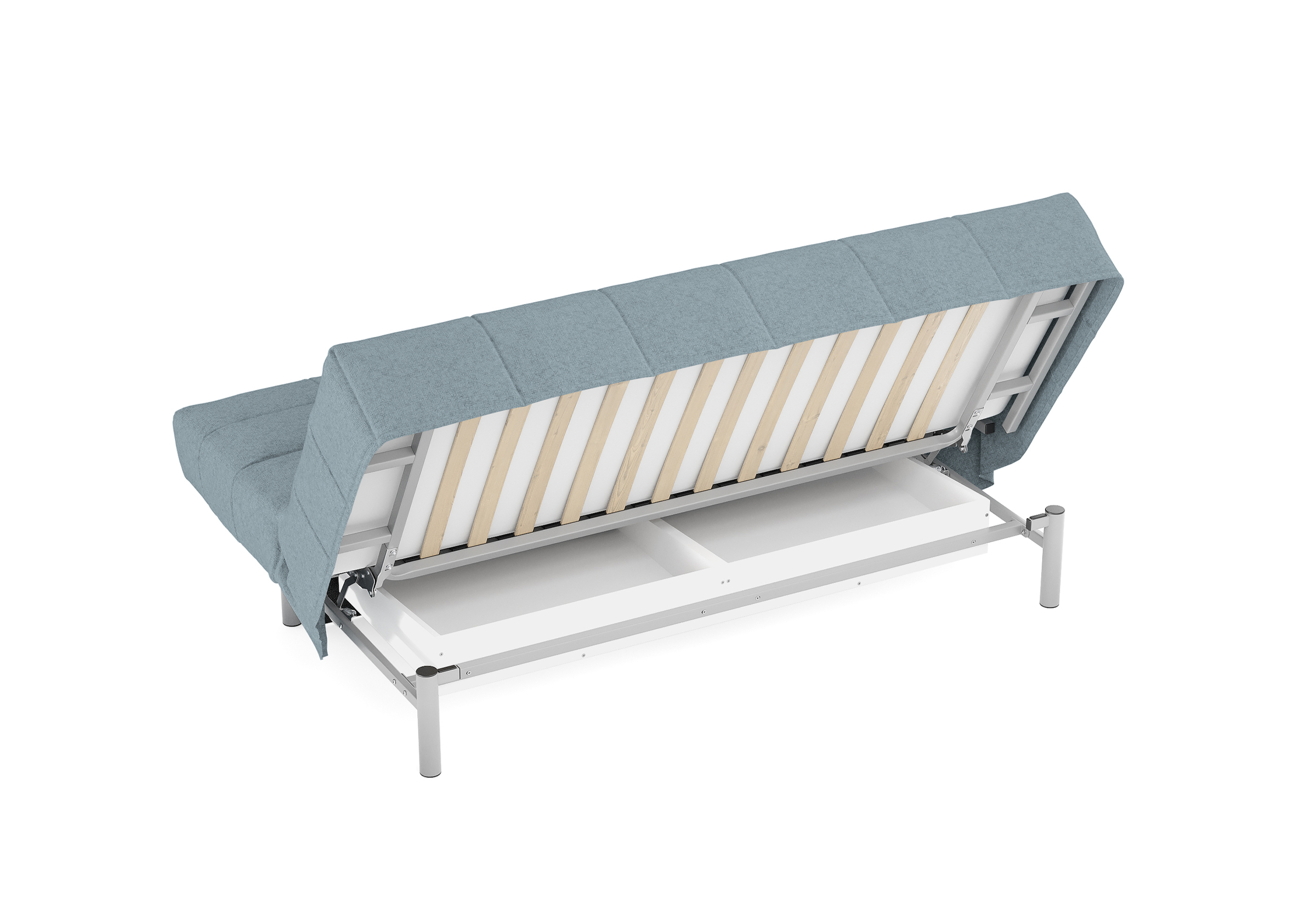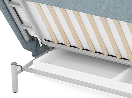 Высокие металлические опоры способствуют легкой уборке под диваном, в том числе роботом-пылесосом.
