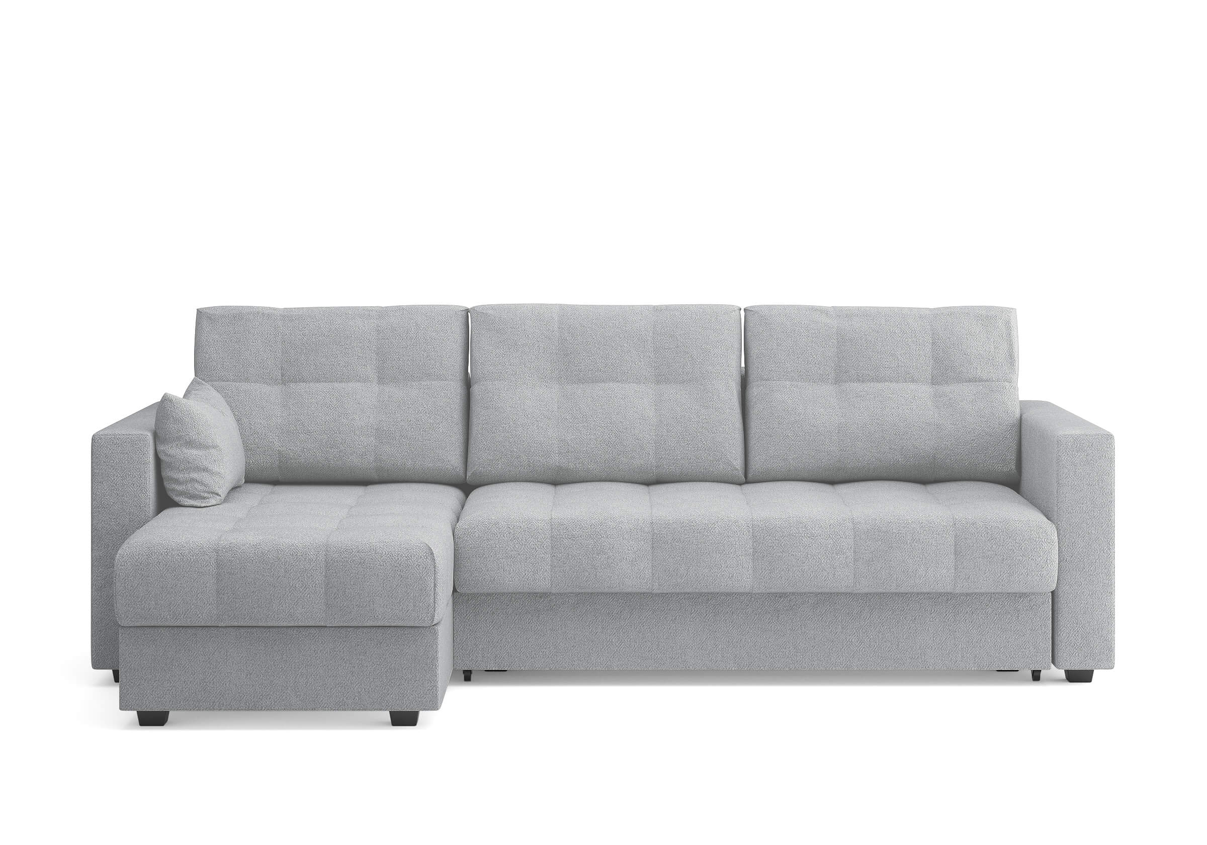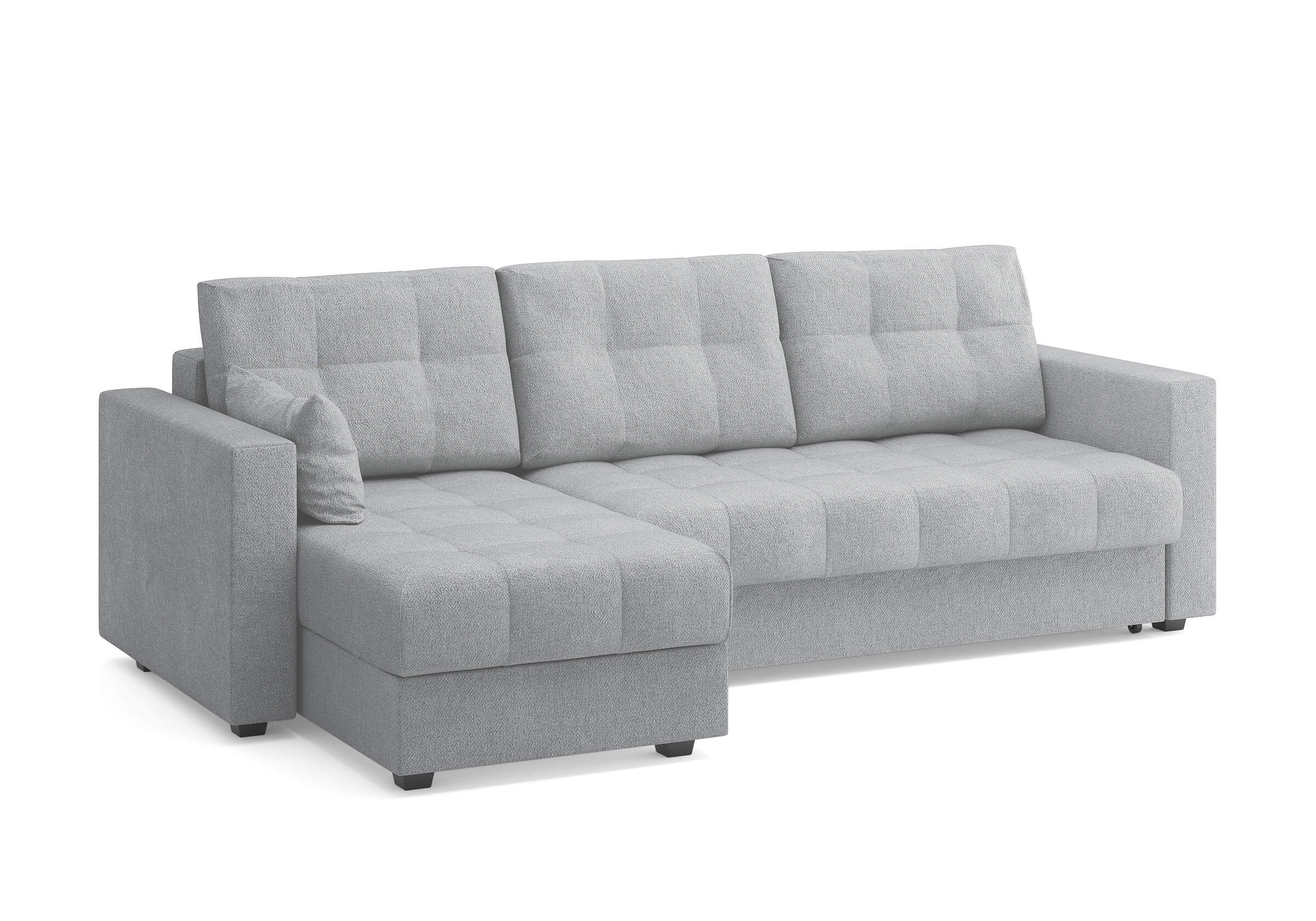 Современный и комфортный диван с механизмом трансформации "еврокнижка". Этот диван станет отличным выбором для дома, сочетая в себе стиль, функциональность и удобство. Диван имеет угловую конфигурацию, что позволяет ему идеально вписаться в любой интерьер. Угловая секция, или оттоманка, устанавливается как справа, так и слева, в зависимости от предпочтений и особенностей планировки комнаты, делая диван универсальным решением для любого пространства. Модель оснащена вместительным бельевым коробом, что позволяет эффективно использовать пространство и хранить постельные принадлежности или другие вещи. Матрас средней жесткости обеспечивает оптимальную поддержку и комфорт во время сна, что важно для ежедневного использования. Задняя спинка дивана защищает от прикосновения со стеной, предотвращая возможные повреждения и загрязнения. В комплект дивана входит декоративная подушка размером 30x50 см, которая добавляет уют и завершает образ интерьера.