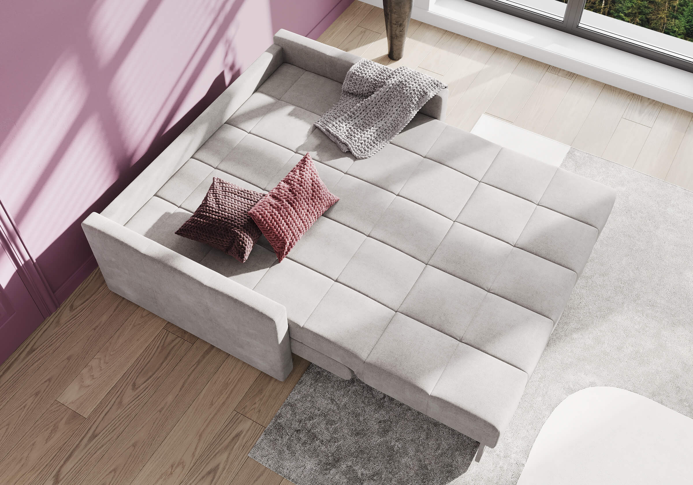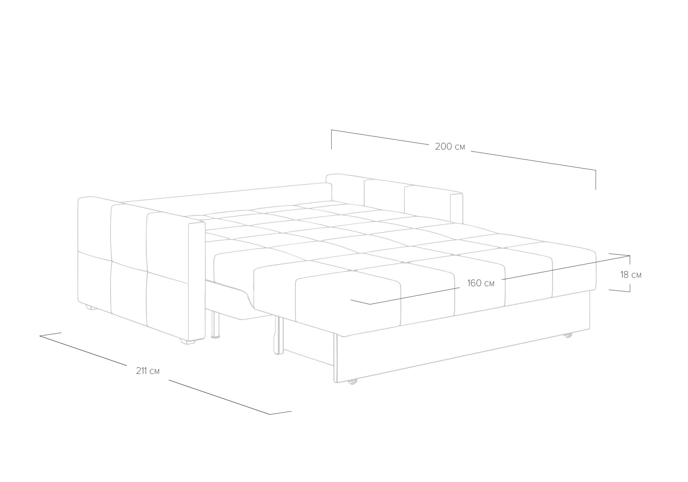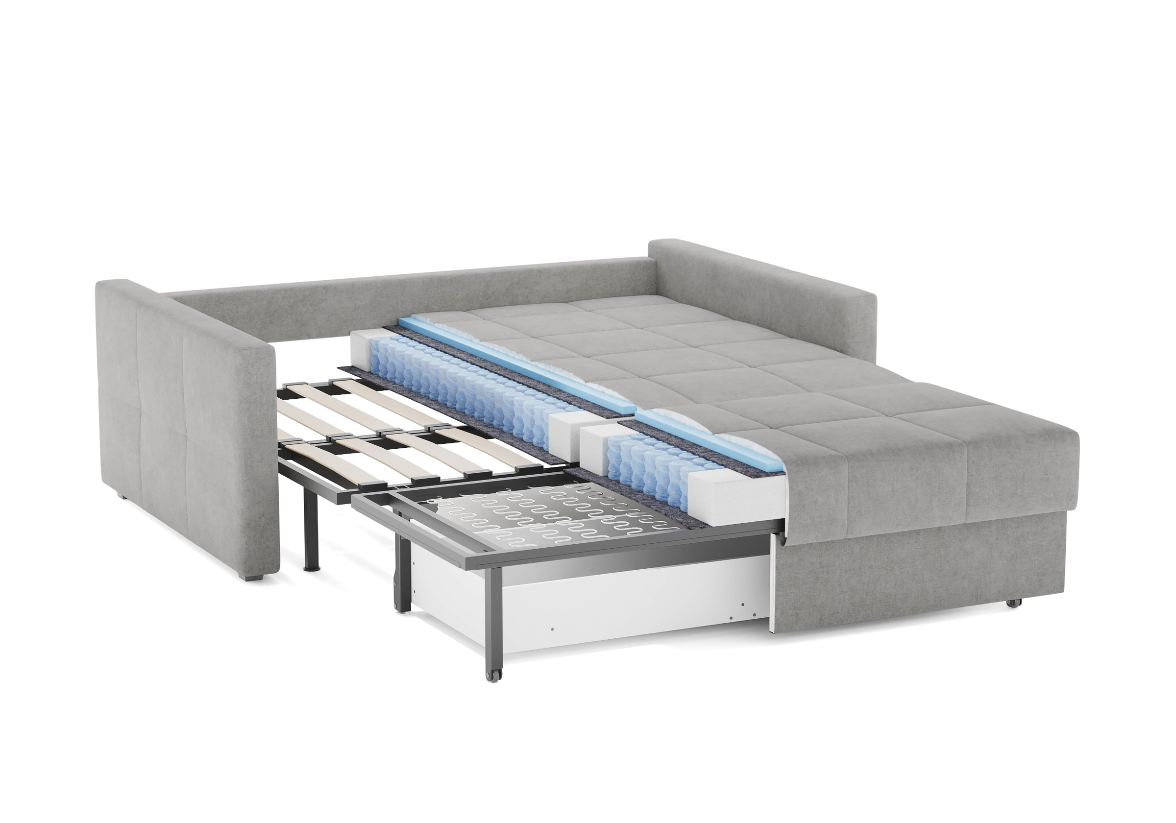 Диван-кровать Rest для сна в современном стиле, с механизмом трансформации аккордеон и коробом для хранения. Металлический каркас с деревянными ламелями обеспечивает ровную поверхность, как на кровати. Матрас анатомический с независимым пружинным блоком. Благодаря чехлу с объемной стежкой в форме квадратов, диван органично впишется в современные интерьеры и интерьеры в стиле минимализм. Лаконичные подлокотники и механизм разложения обеспечивают дивану минимальные габариты в ширину как в сложенном, так и разложенном виде. Диван Rest оборудован вместительным коробом для хранения постельного белья или аксессуаров для сна. Rest имеет 2 положения трансформации - диван с комфортной посадкой и кровать с полноценным анатомическим матрасом.