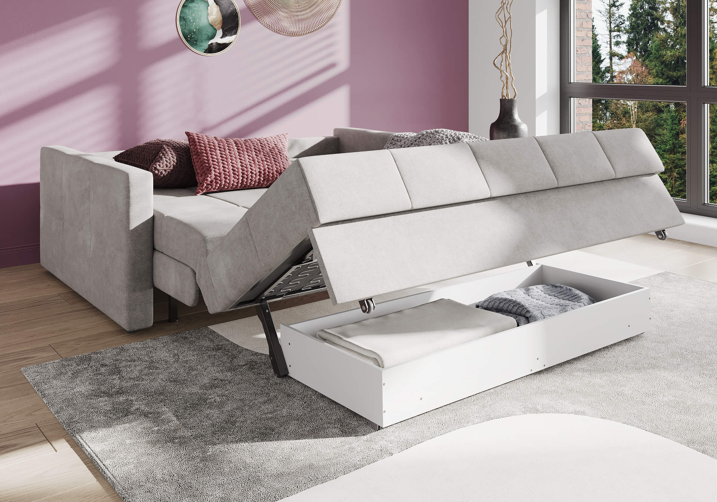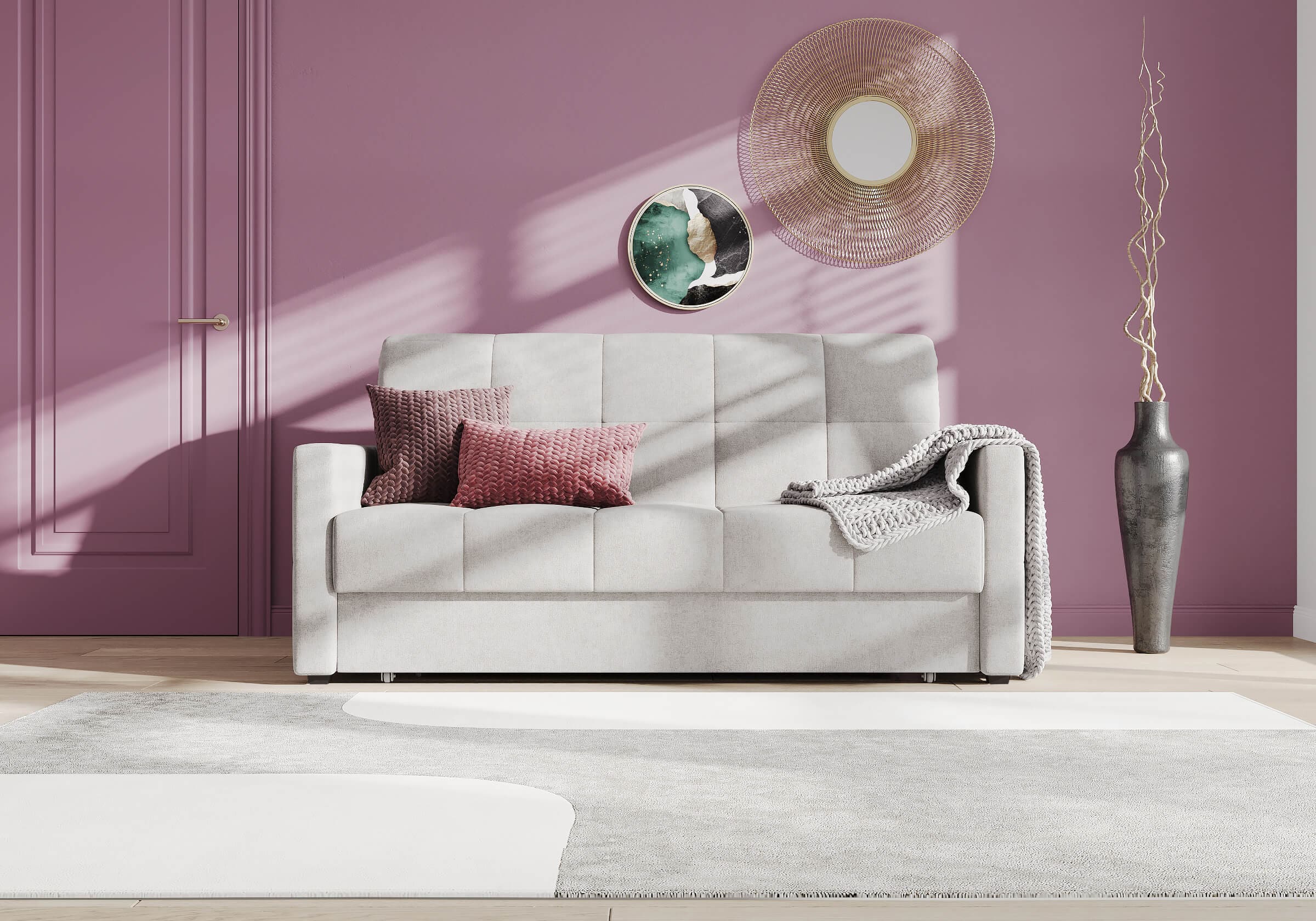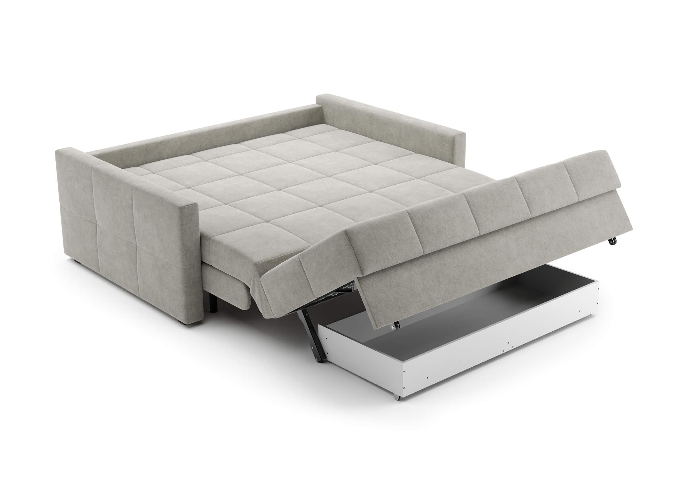 Диван-кровать Rest для сна в современном стиле, с механизмом трансформации аккордеон и коробом для хранения. Металлический каркас с деревянными ламелями обеспечивает ровную поверхность, как на кровати. Матрас анатомический с независимым пружинным блоком. Благодаря чехлу с объемной стежкой в форме квадратов, диван органично впишется в современные интерьеры и интерьеры в стиле минимализм. Лаконичные подлокотники и механизм разложения обеспечивают дивану минимальные габариты в ширину как в сложенном, так и разложенном виде. Диван Rest оборудован вместительным коробом для хранения постельного белья или аксессуаров для сна. Rest имеет 2 положения трансформации - диван с комфортной посадкой и кровать с полноценным анатомическим матрасом.