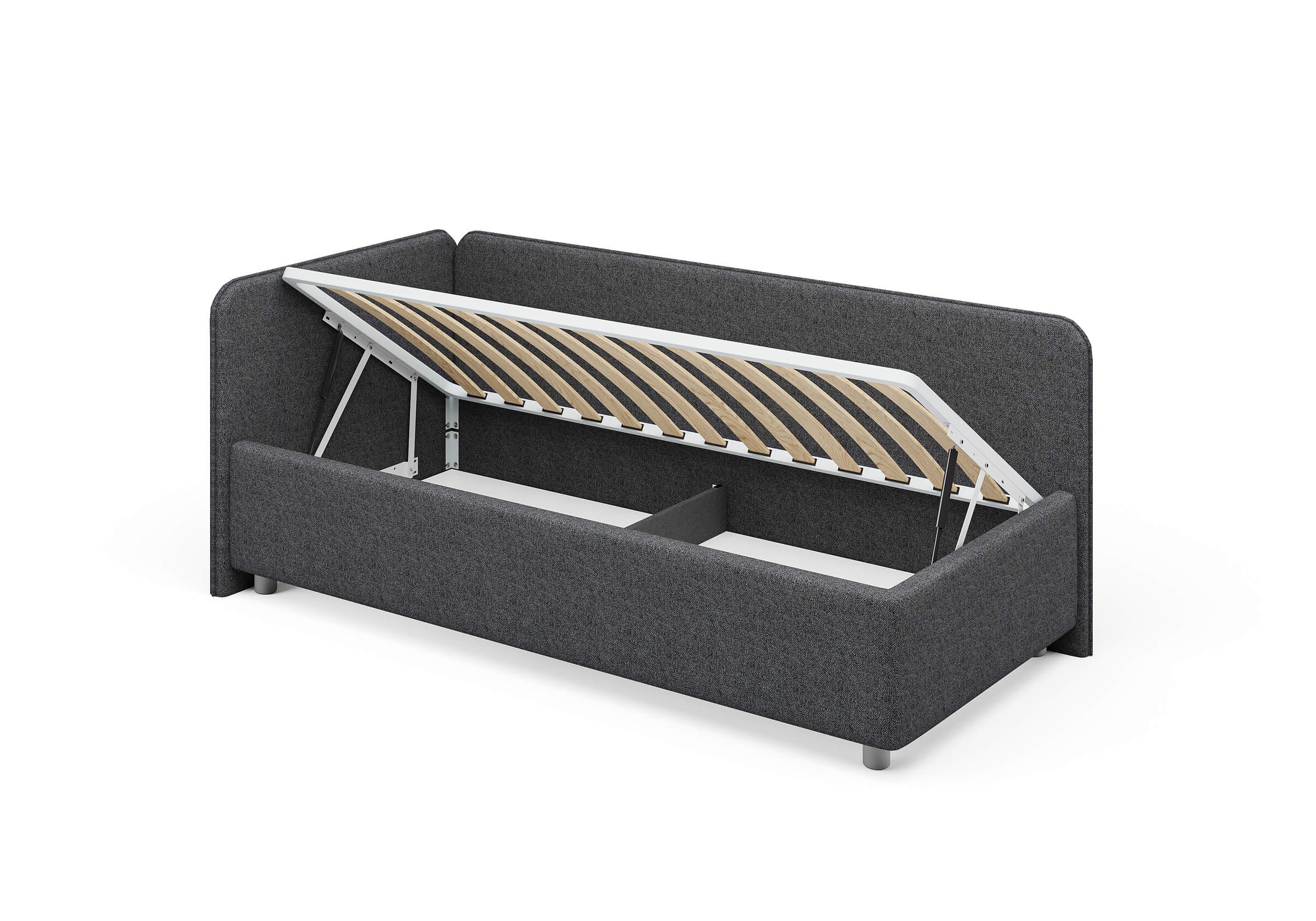 Возможна установка подъемного механизма со вместительным бельевым ящиком. Дно бельевого ящика легко сдвигается для обеспечения уборки под кроватью.