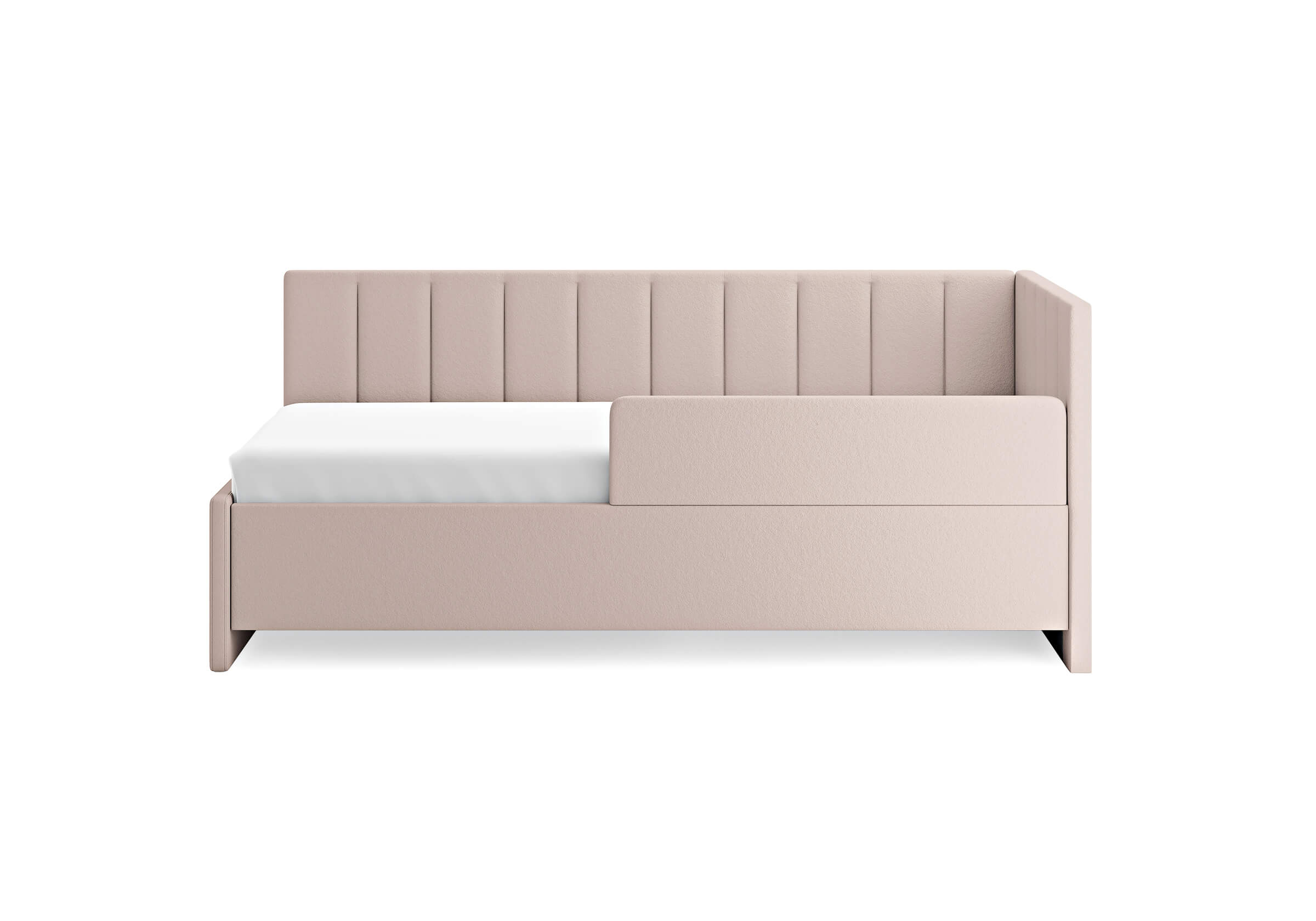 Односпальная кровать с боковой спинкой для современных интерьеров. Модель занимает минимальное пространство в спальне. Подходит для квартир с небольшой площадью, детских и подростковых спален, гостевых комнат. Мягкие элементы спинки, создают атмосферу уюта, а благодаря размерному ряду, защитному бортику и множеству цветов и фактур кровать подойдет как малышам, так и подросткам. Защитный бортик приобретается дополнительно, его легко установить на левую или правую сторону кровати. Боковую спинку кровати можно установить при сборке на правую или левую сторону, что делает модель универсальной. Модель укомплектована ортопедическим основанием, при желании в нее можно установить подъемный механизм с бельевым коробом. Расстояние от пола до царг способствует легкой уборке под кроватью, в том числе роботом – пылесосом.