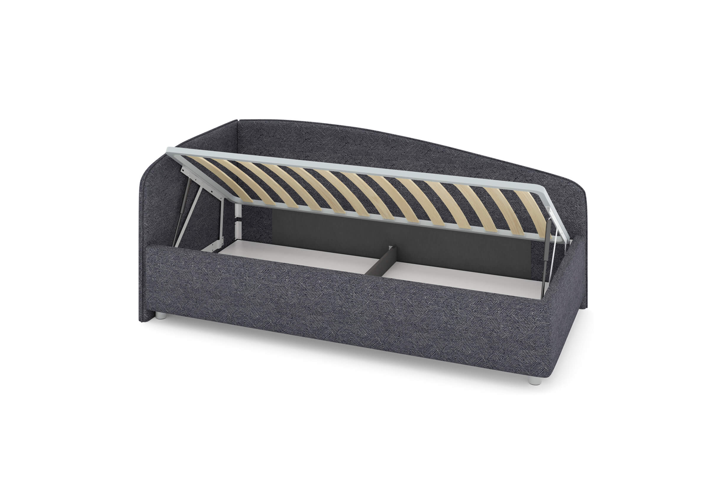 Односпальная кровать для ребенка или подростка. Модель изготовлена из ДСП. При необходимости кровать может быть укомплектована разборным или неразборным металлическим основанием с ламелями, подъемным механизмом с бельевым ящиком.