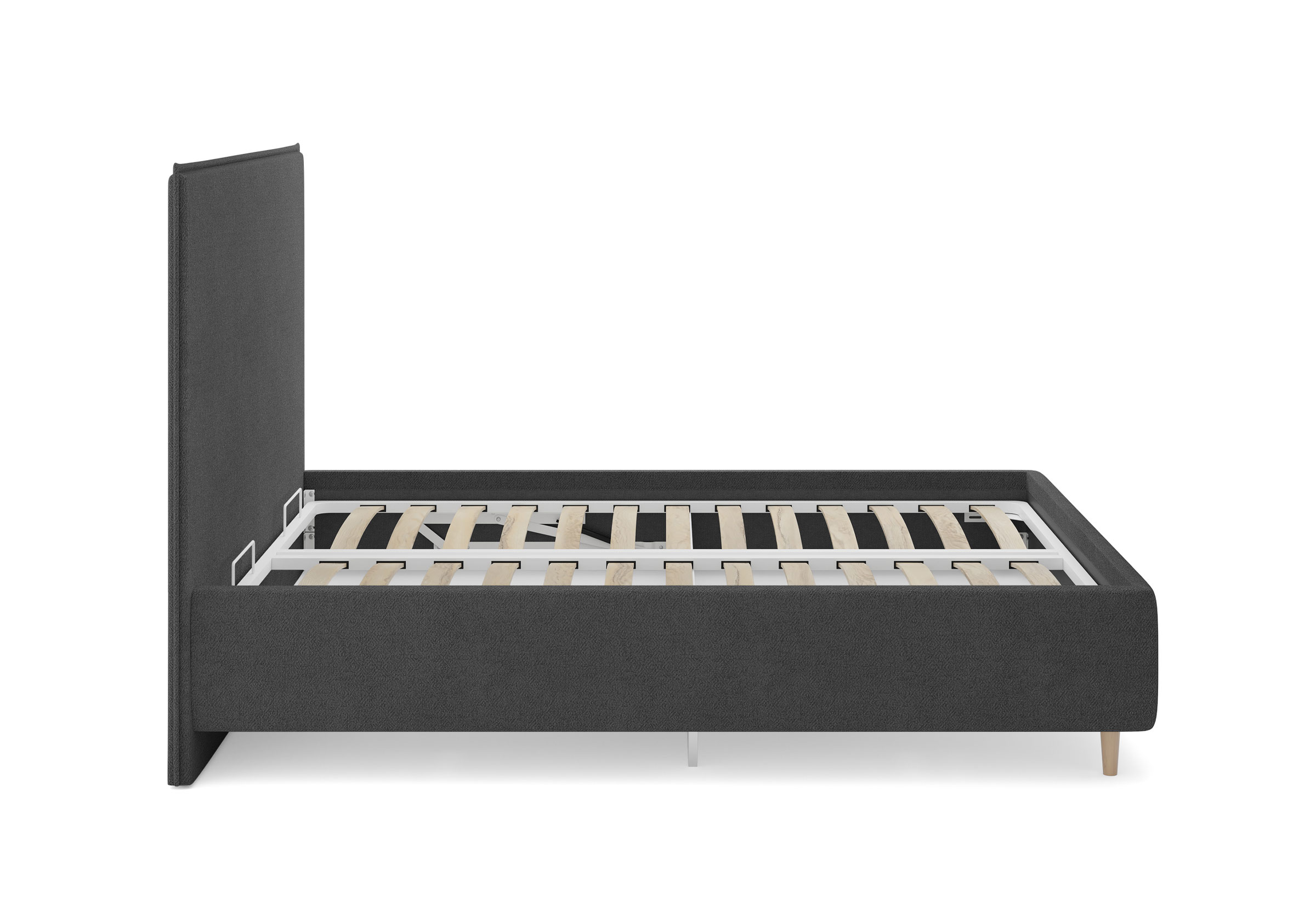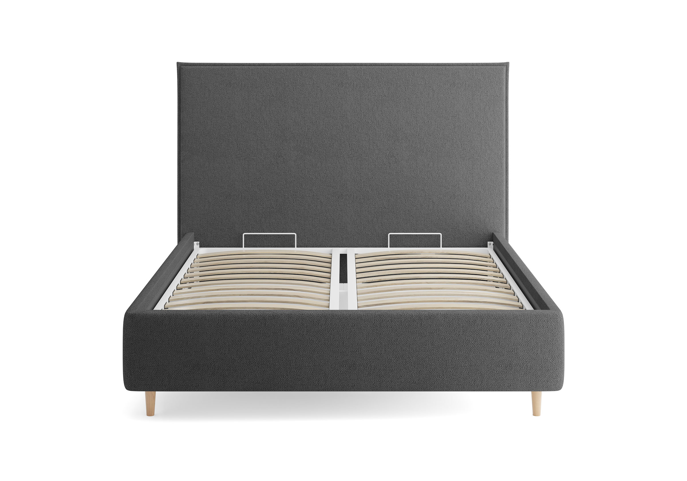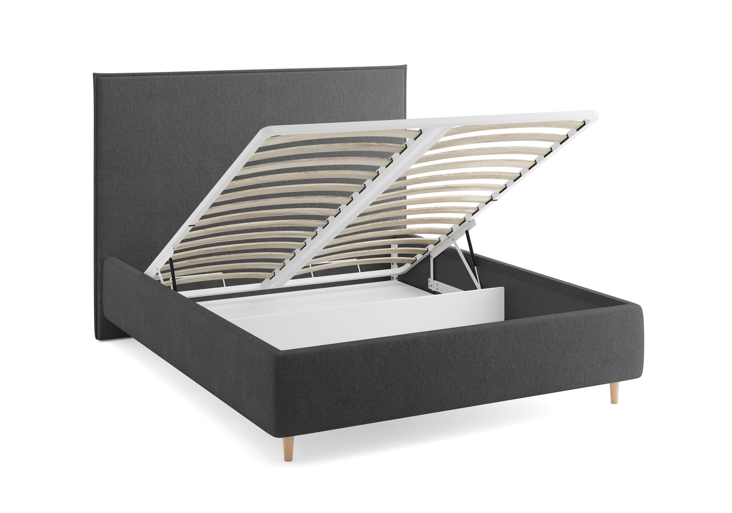 Кровать Eveline для современных интерьеров в скандинавском стиле. Выглядит эффектно благодаря мягкому высокому изголовью с декоративным кантом по периметру и опорам из натурального дерева. Модель будет смотреться выигрышно и актуально в интерьере, делая спальню уютнее, настраивая на отдых. При необходимости кровать может быть укомплектована разборным или неразборным металлическим основанием с ламелями, подъемным механизмом с бельевым коробом.