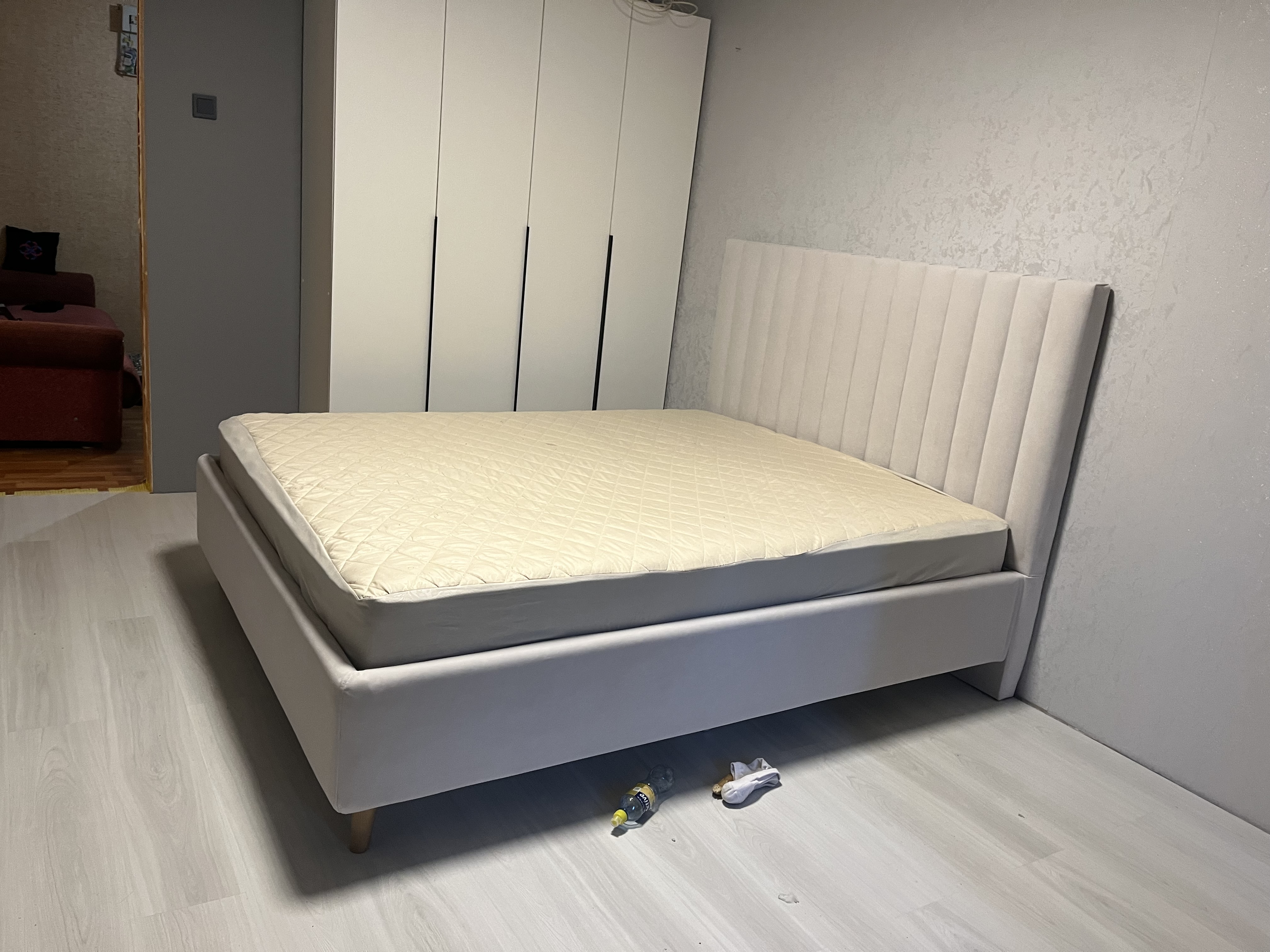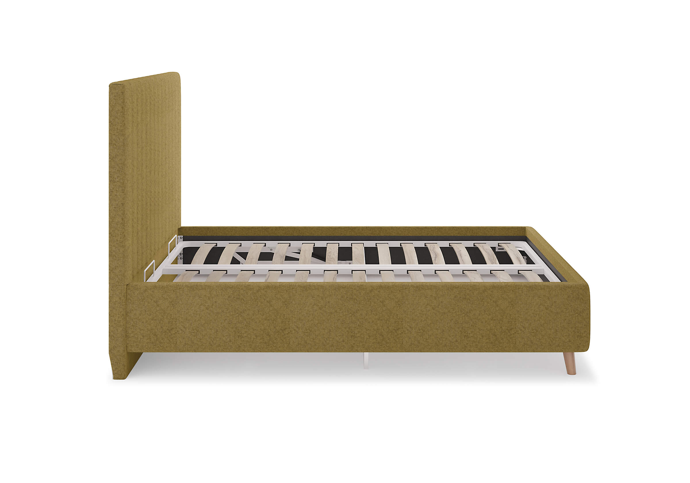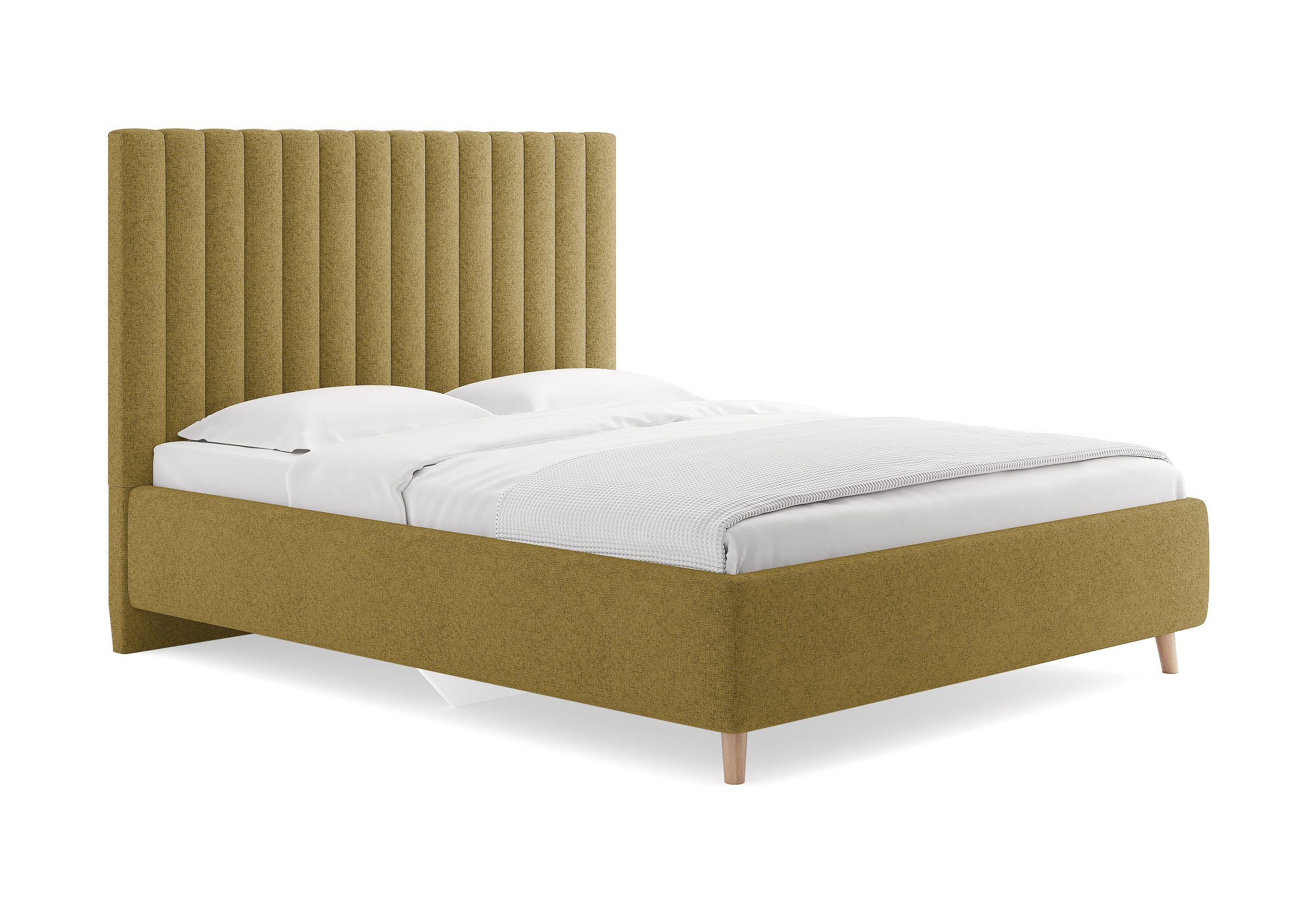 Основание кровати на деревянных ножках. Благодаря увеличенной высоте позволяют осуществлять легкую уборку под кроватью, даже с помощью робота-пылесоса.