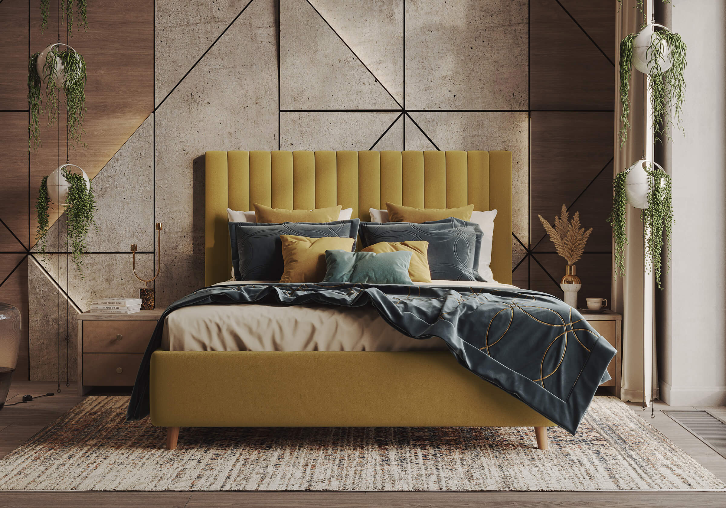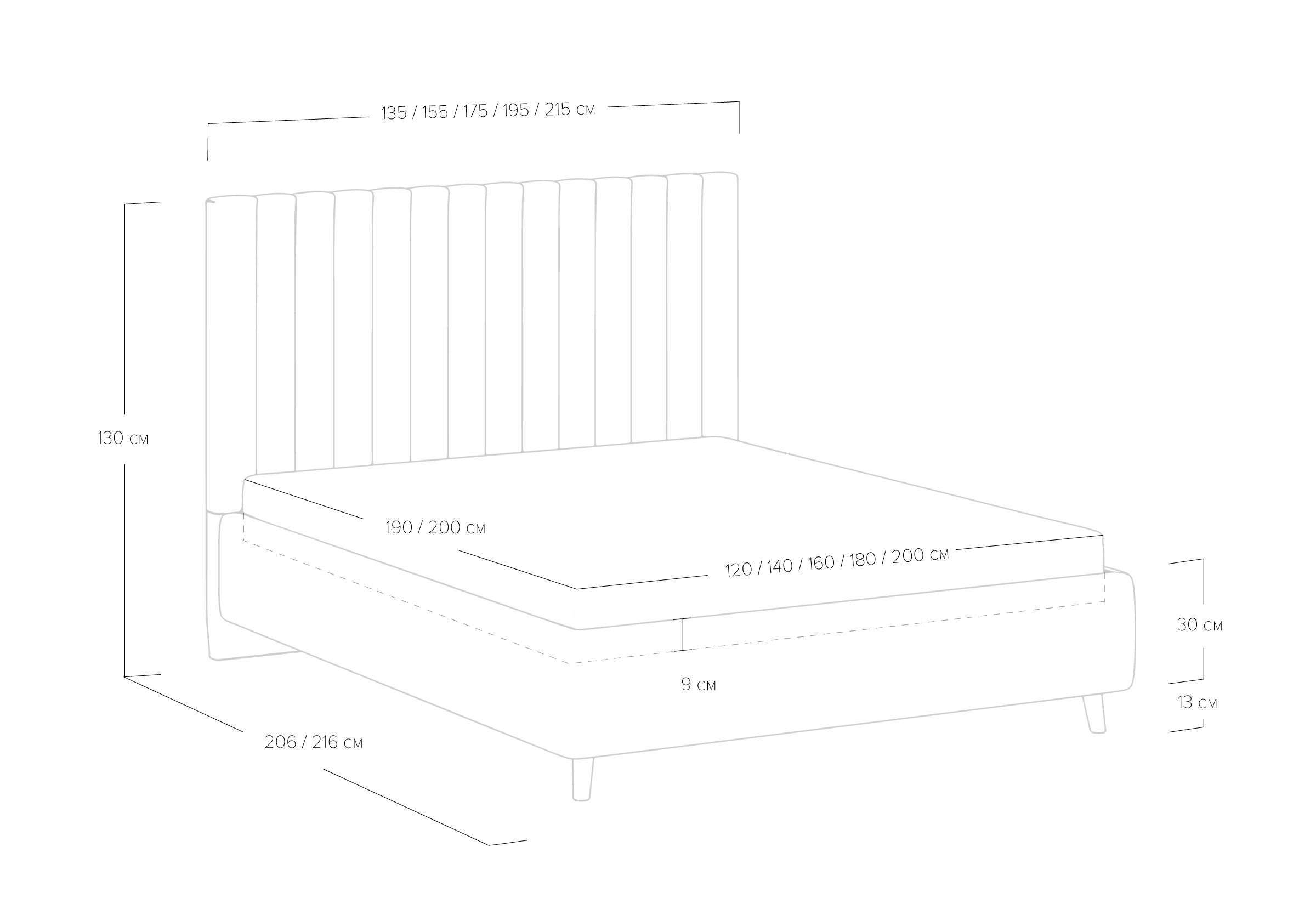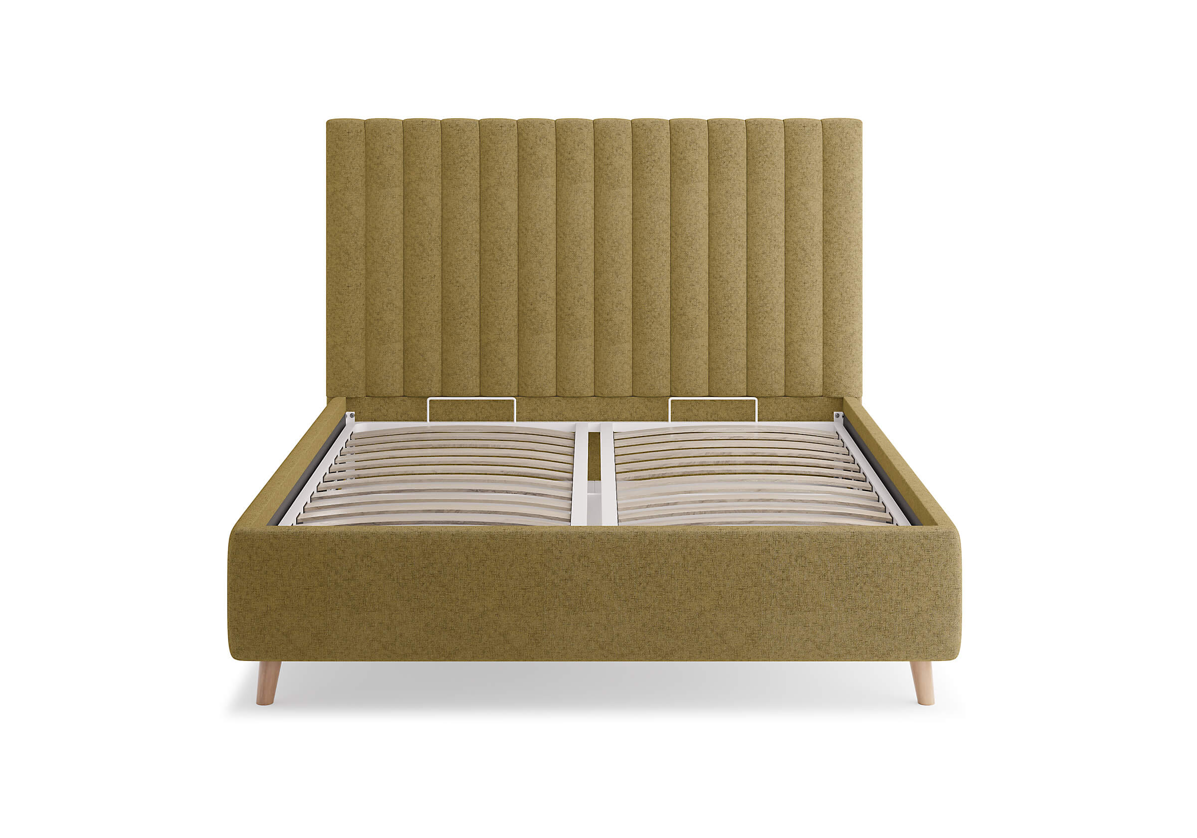 Основание кровати на деревянных ножках. Благодаря увеличенной высоте позволяют осуществлять легкую уборку под кроватью, даже с помощью робота-пылесоса.