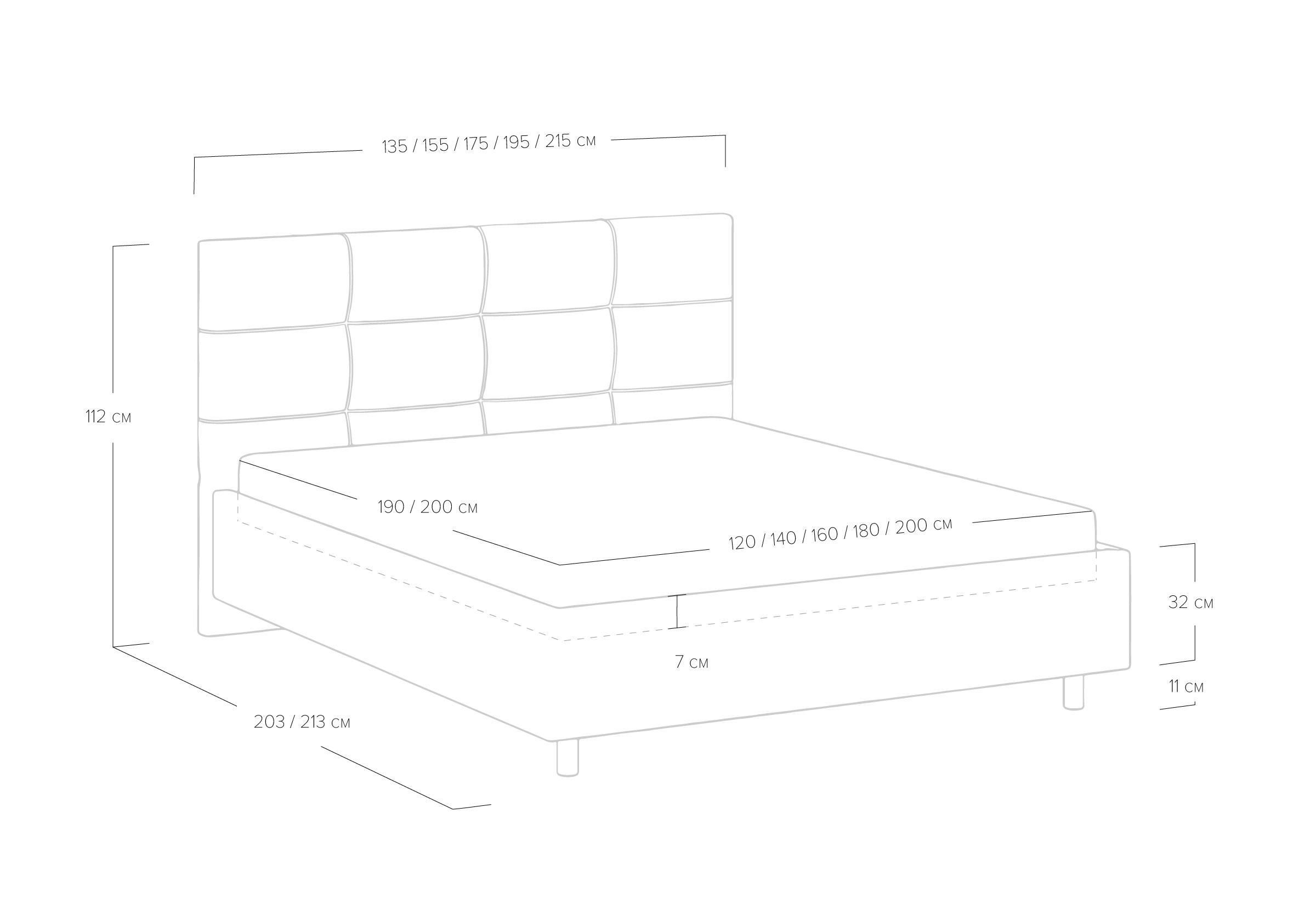 Современная кровать с эффектным декоративным кантом. Модель изготовлена из ДСП. При необходимости кровать может быть укомплектована разборным или неразборным металлическим основанием с ламелями, подъемным механизмом с бельевым ящиком, трансформируемым основанием Aquarius.
