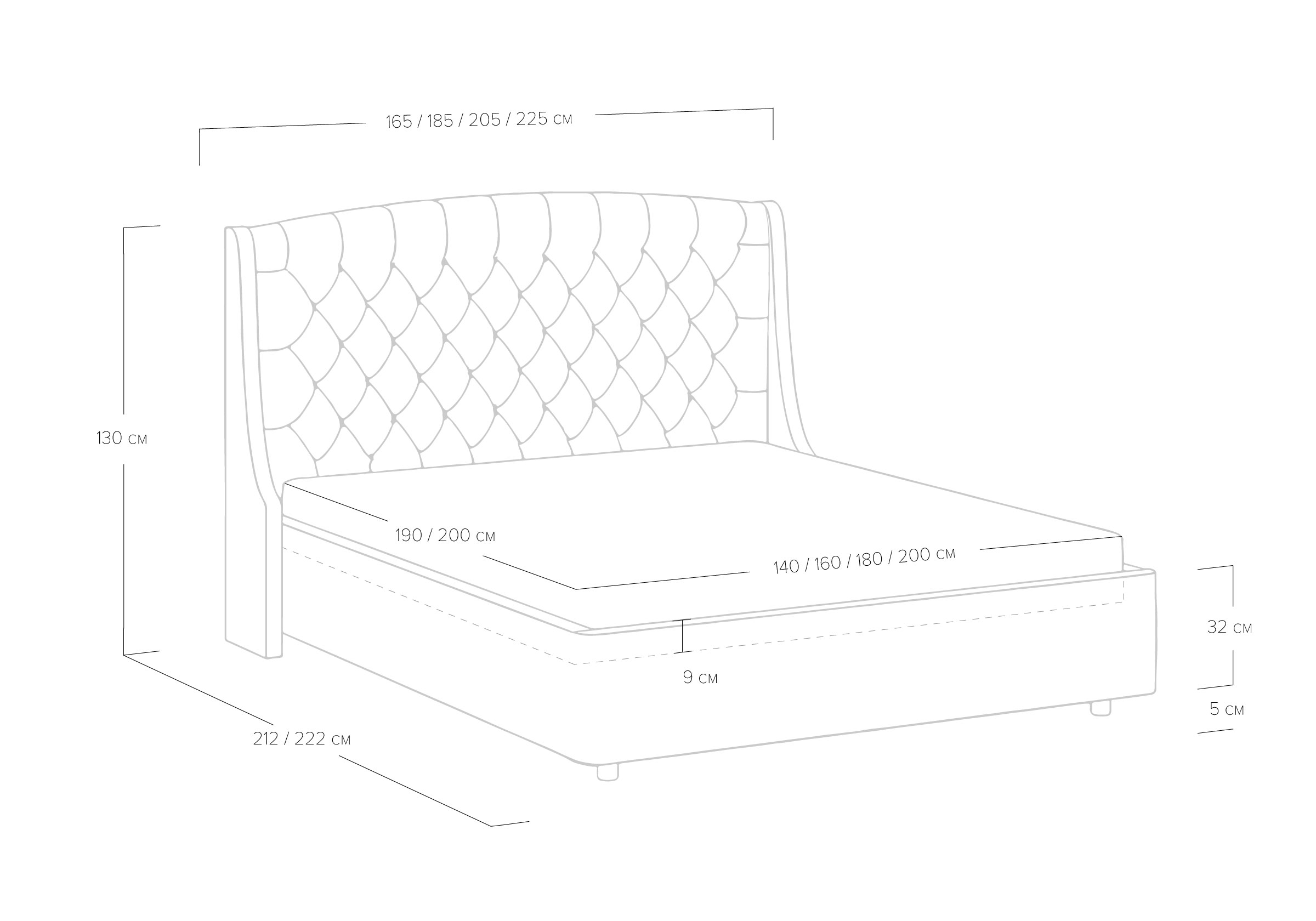 Стильная и комфортная интерьерная кровать. Кровать выглядит гармонично как в классическом интерьере, так и в современном, что открывает простор для смелых дизайнерских решений. При необходимости кровать может быть укомплектована разборным или неразборным металлическим основанием с ламелями, подъемным механизмом с бельевым ящиком, трансформируемым основанием Aquarius.