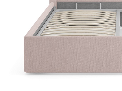 Кровать с высоким, элегантным изголовьем и декоративной рамкой. Такое решение придает кровати визуальную выразительность и делает ее центральным элементом спальни. Стоит обратить внимание на декоративный кант, который добавляет изысканности и завершенности облику. Кровать Eliot имеет минимальные опоры, царги опущены до пола. Также можно встроить зону хранения — это идеальное решение для экономии пространства в спальне.