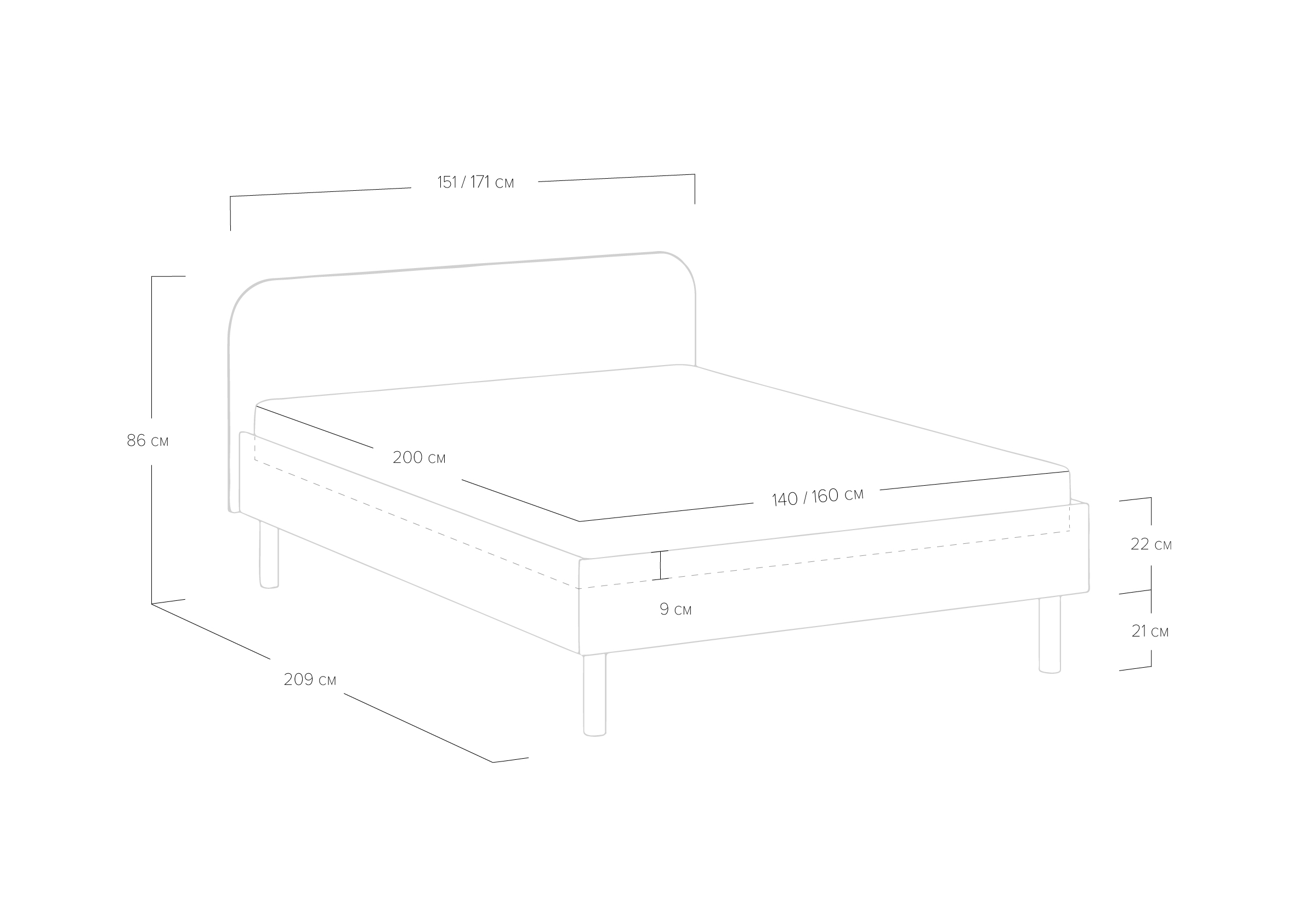 Основание кровати на высоких металлических ножках. Благодаря увеличенной высоте позволяют осуществлять легкую уборку под кроватью, даже с помощью робота-пылесоса.