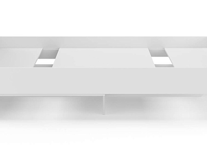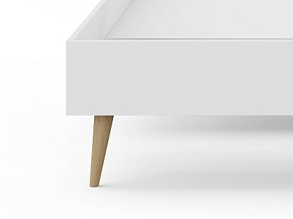 Основание кровати на деревянных ножках. Благодаря увеличенной высоте позволяют осуществлять легкую уборку под кроватью, даже с помощью робота-пылесоса.