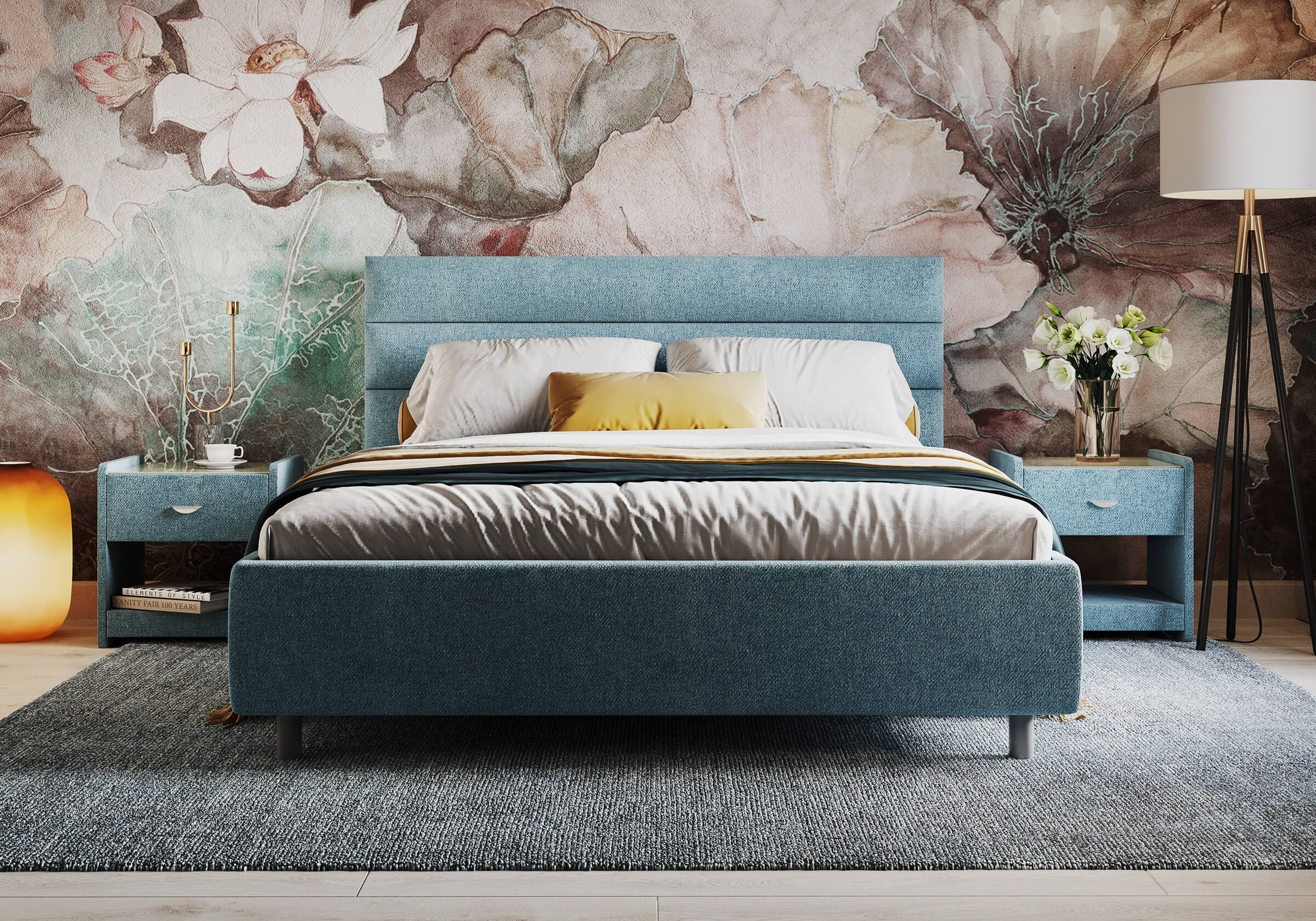 Основание кровати на металлических ножках. Благодаря увеличенной высоте позволяют осуществлять легкую уборку под кроватью, даже с помощью робота-пылесоса.
