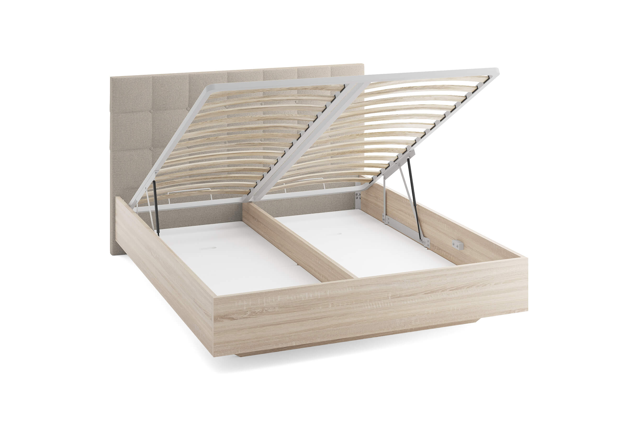 Возможность установки подъемного механизма со вместительным бельевым коробом, 13 см глубиной. Дно бельевого ящика легко сдвигается, что позволяет просто убраться под кроватью.