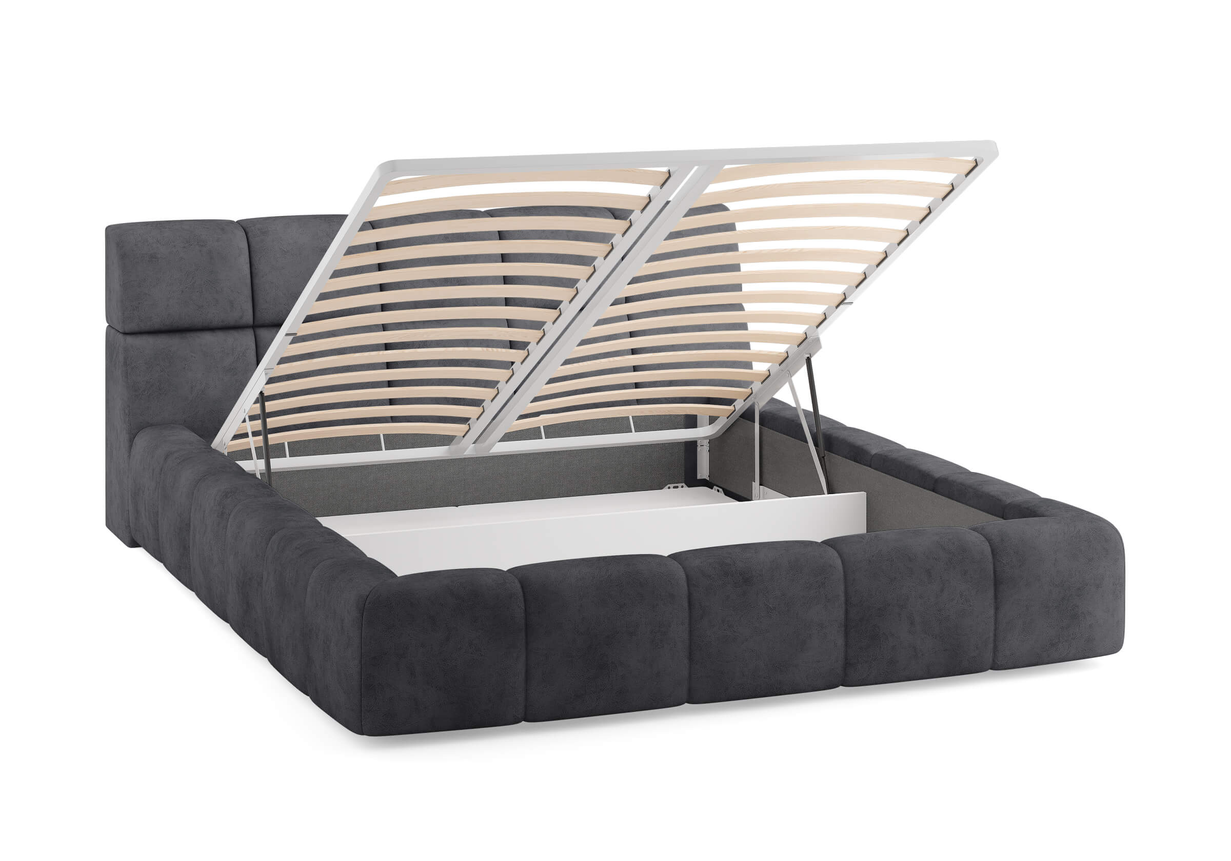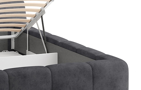 Возможна установка подъемного механизма с вместительным бельевым ящиком. Дно бельевого ящика легко сдвигается для обеспечения уборки под кроватью.