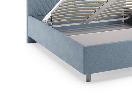 Основание кровати на высоких металлических ножках. Благодаря увеличенной высоте позволяют осуществлять легкую уборку под кроватью, даже с помощью робота-пылесоса.