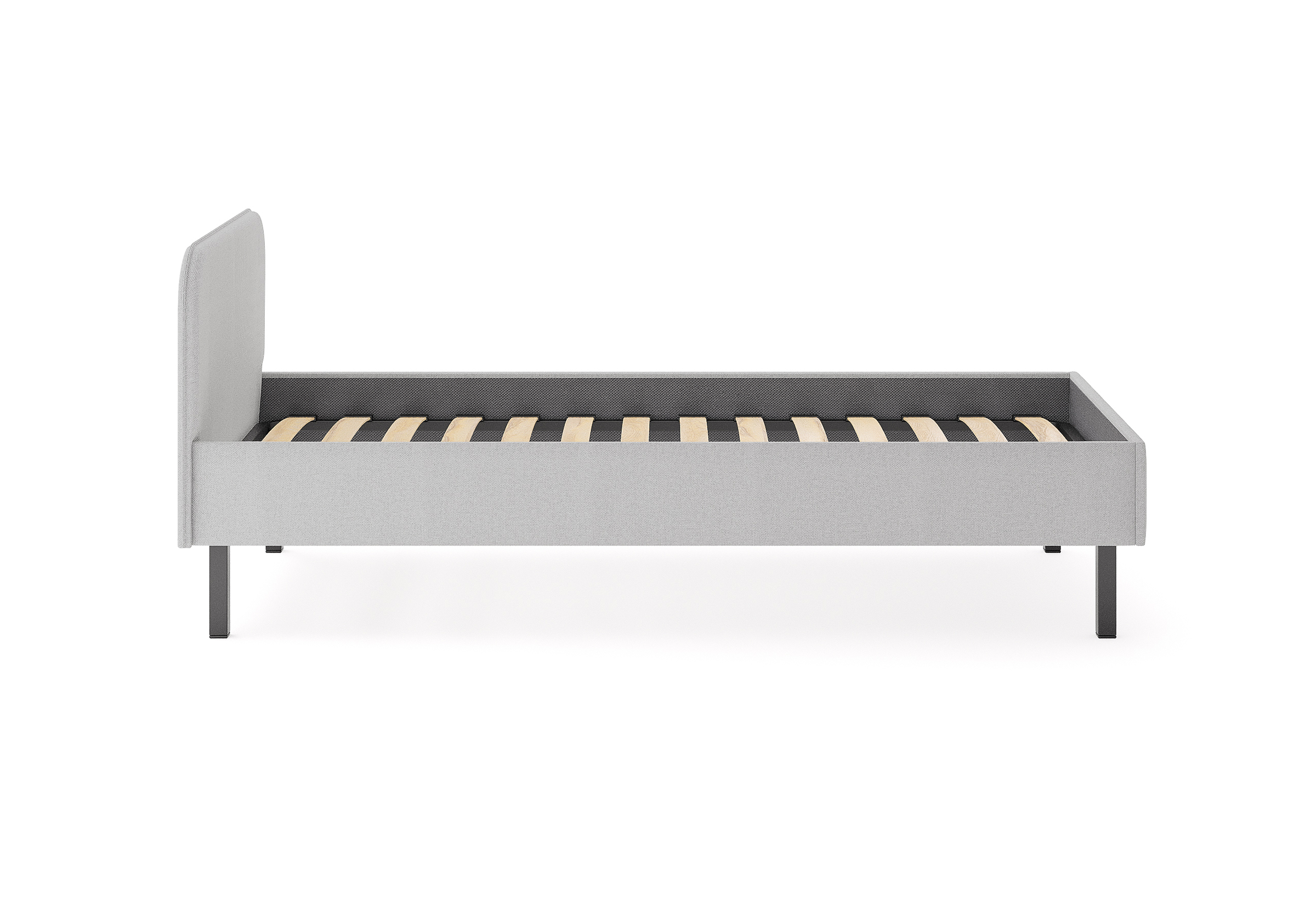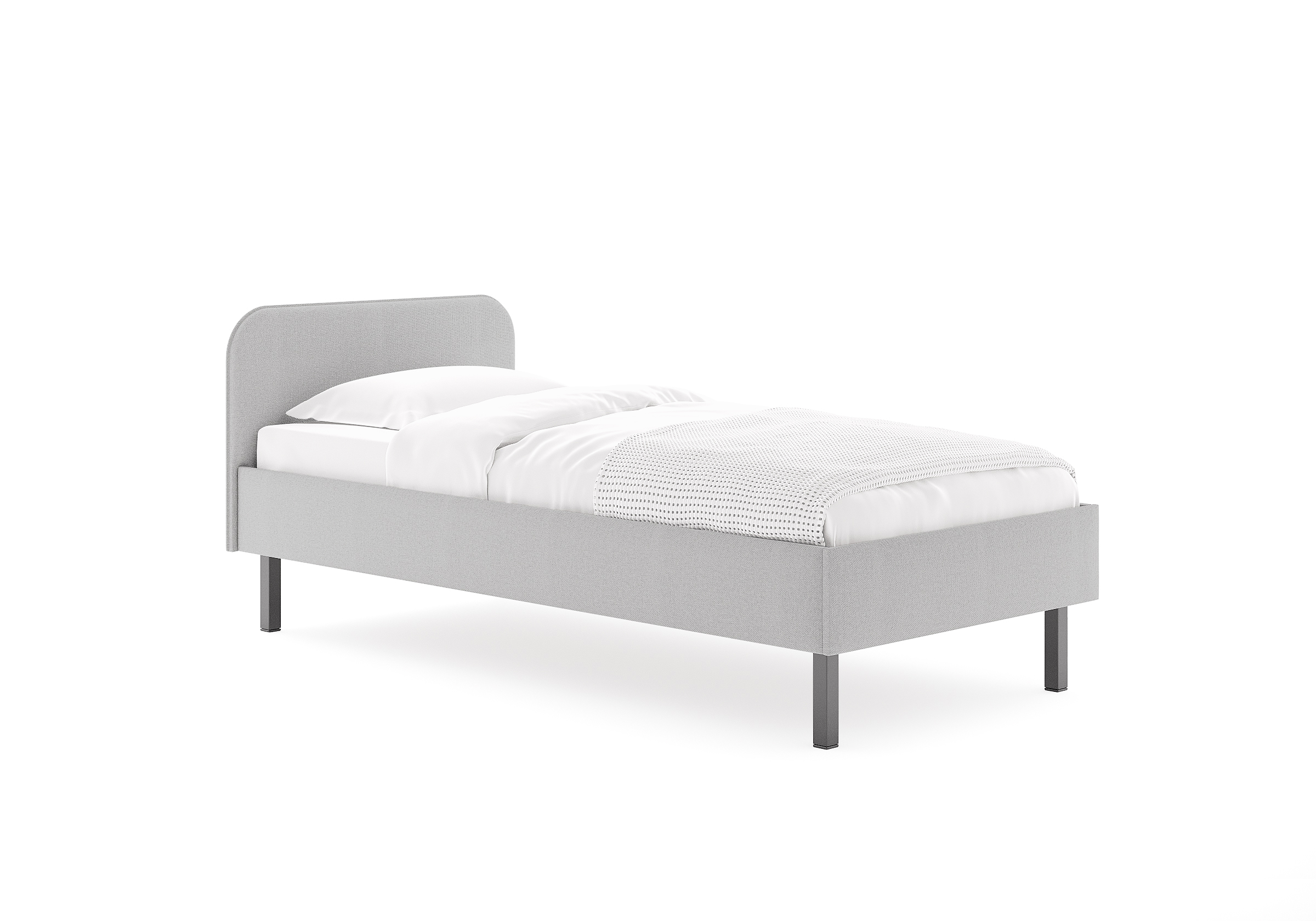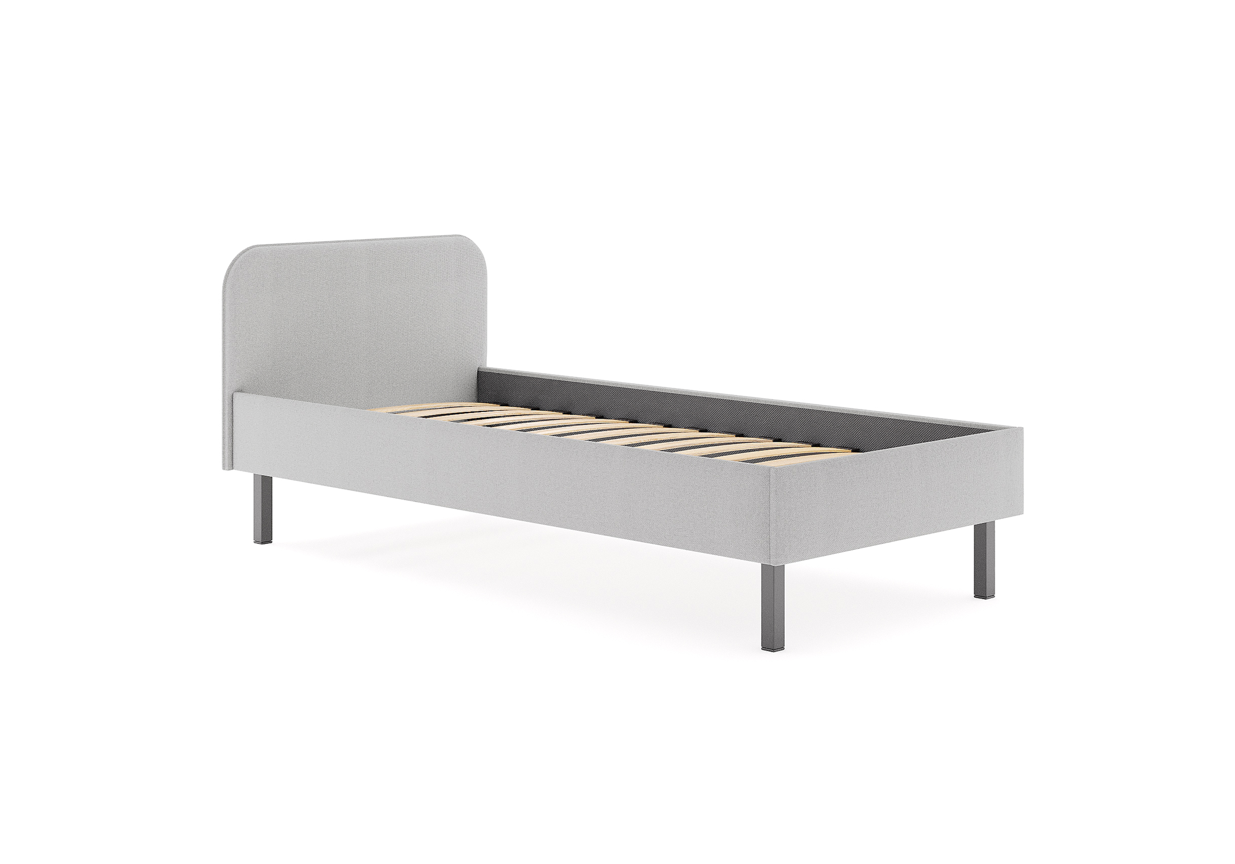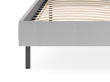 Основание кровати на высоких металлических ножках. Благодаря увеличенной высоте позволяют осуществлять легкую уборку под кроватью, даже с помощью робота-пылесоса.