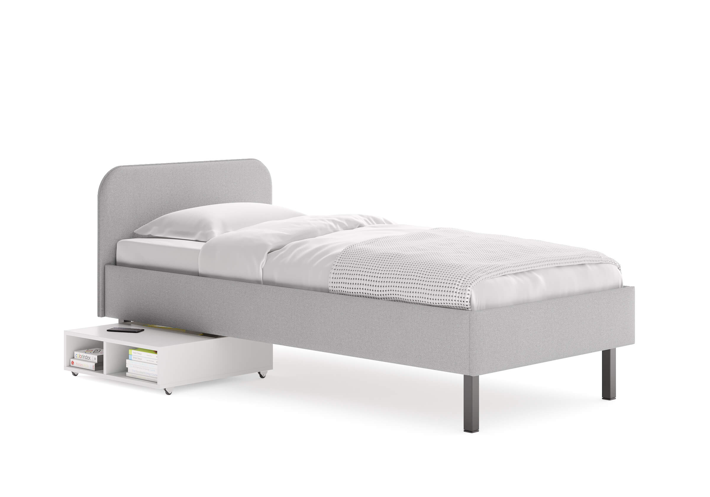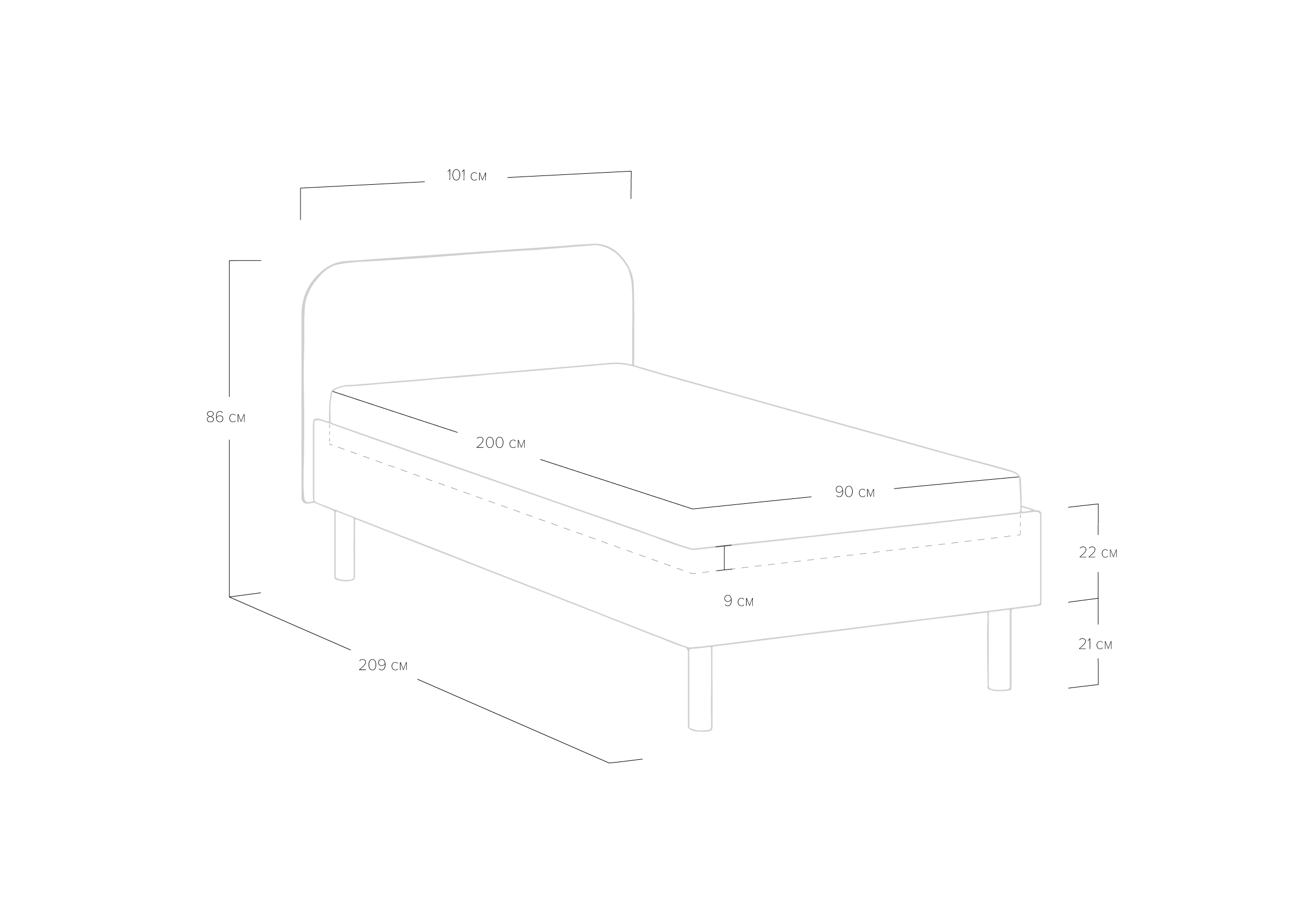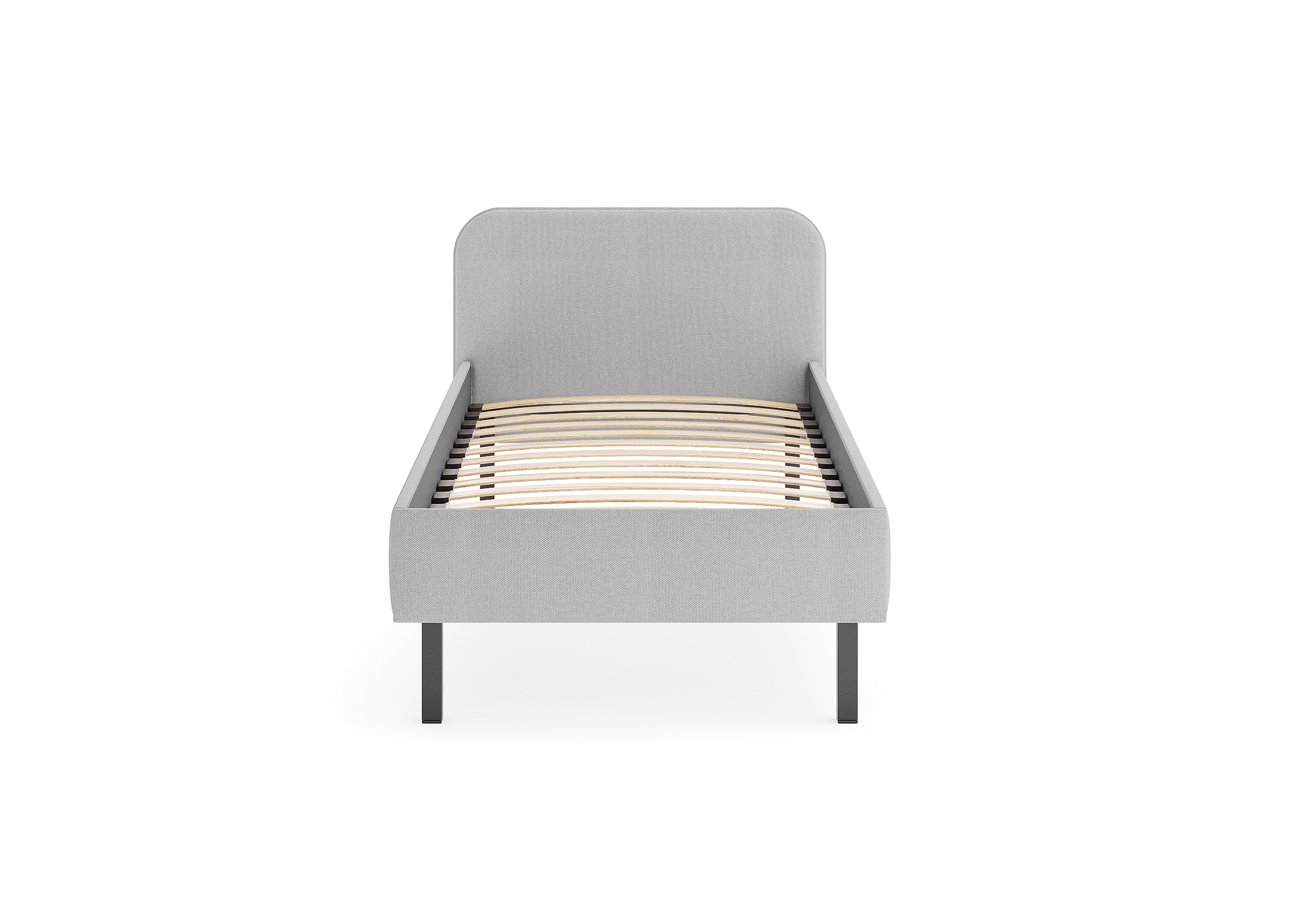 Основание кровати на высоких металлических ножках. Благодаря увеличенной высоте позволяют осуществлять легкую уборку под кроватью, даже с помощью робота-пылесоса.