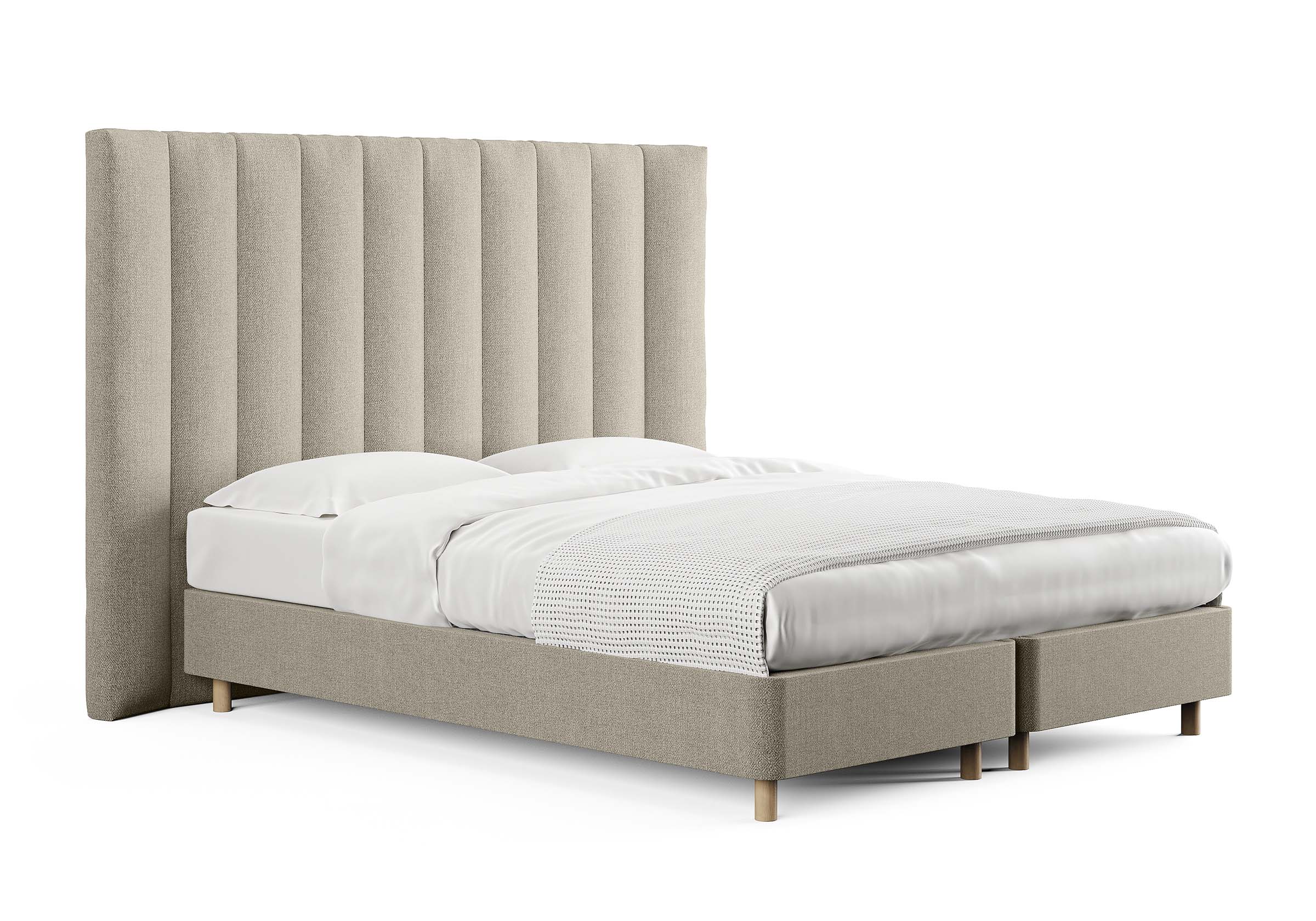 Основание кровати на деревянных опорах. Благодаря увеличенной высоте позволяют осуществлять легкую уборку под кроватью, даже с помощью робота-пылесоса.