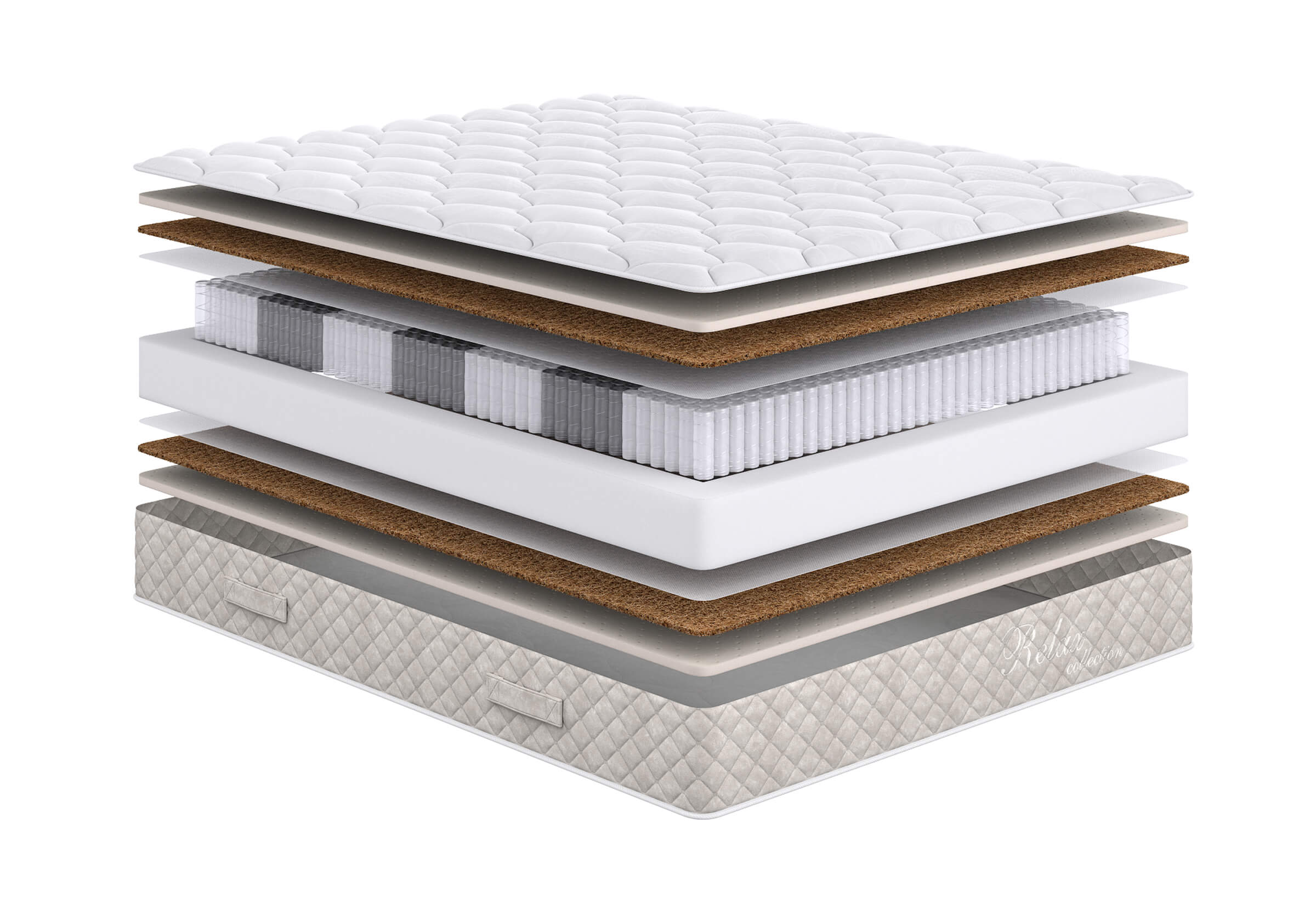 Природный натуральный материал. Состоит из волокон ореха кокосовой пальмы, пропитанных составом из натурального латекса. Гипоалергенен, обеспечивает циркуляцию воздуха и теплообмен.
