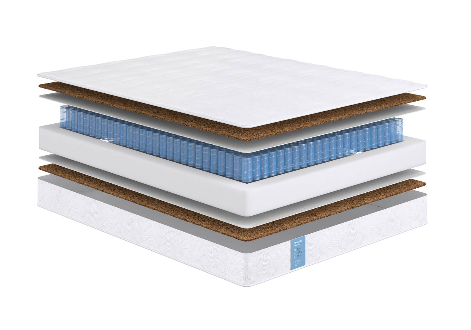Природный натуральный материал. Состоит из волокон ореха кокосовой пальмы, пропитанных составом из натурального латекса. Гипоалергенен, обеспечивает циркуляцию воздуха и теплообмен.