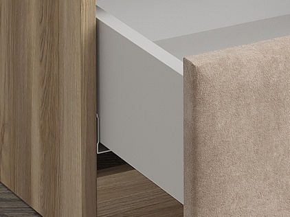 Шариковые направляющие скрытого монтажа оснащены доводчиками, что делает модель надежной и комфортной.