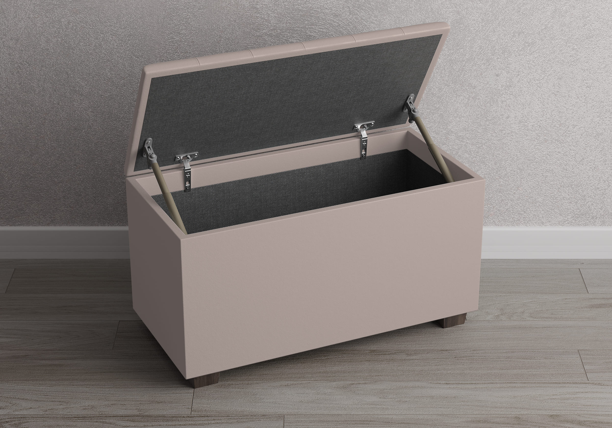 Стильная и удобная банкетка прекрасно дополняет собой любую кровать. Банкетка имеет скрытую емкость для хранения, которая становятся доступна при открытии сиденья.