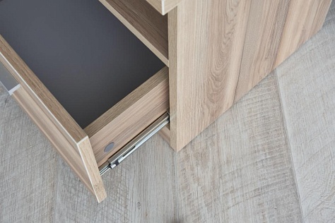 Глубокий и вместительный ящик тумбы позволяет хранить в доступном месте все необходимые вещи.