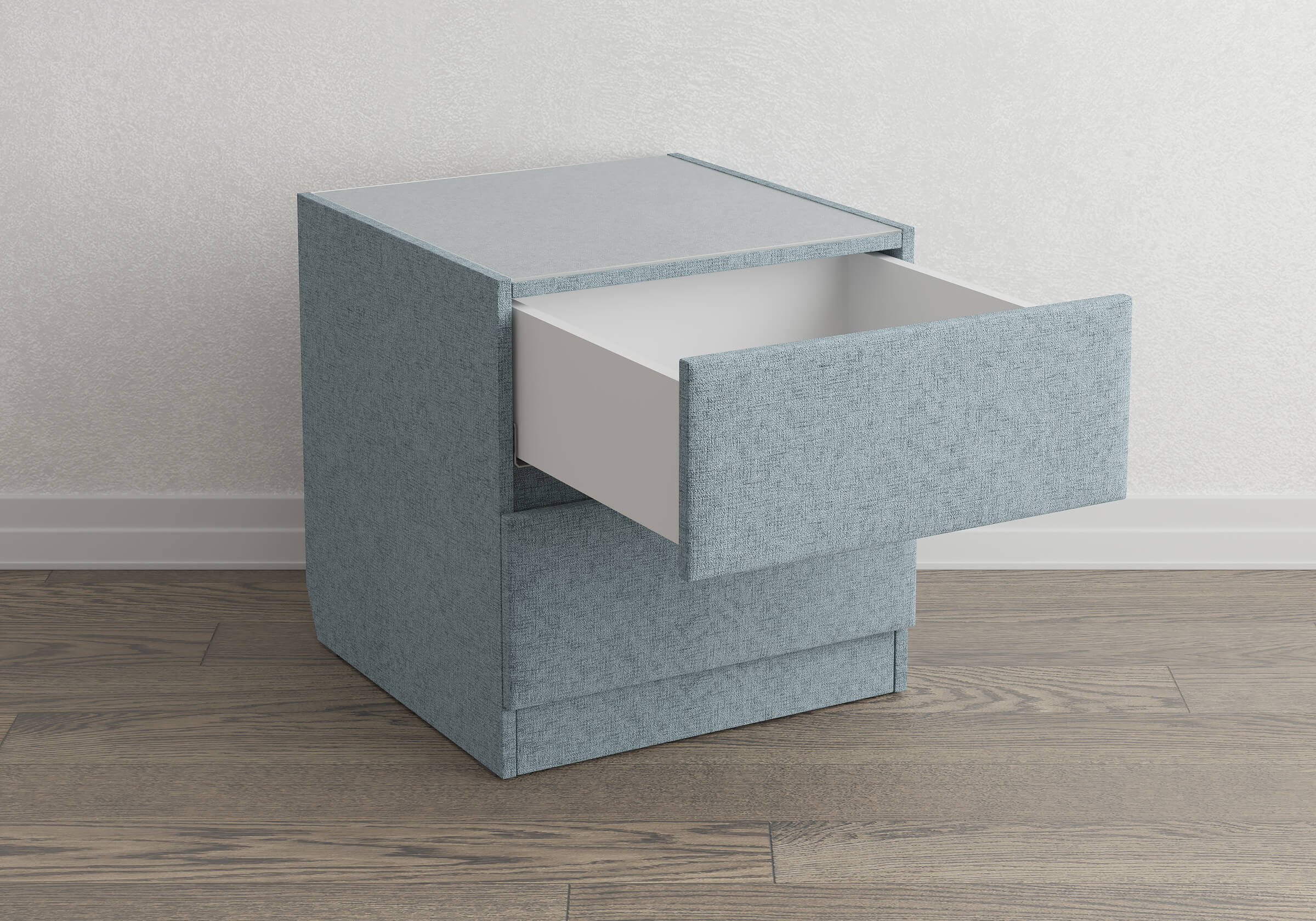 Тумба Omega выполнена в современном стиле. Прямые линии, отсутствие ручек и просвета от пола, делают ее универсальной, позволяя комплектовать тумбы с кроватями, имеющими лаконичное современное изголовье. Два выдвижных ящика с направляющими скрытого монтажа оснащены доводчиками. Задняя стенка выполнена из ДСП и обита спанбондом, что делает тумбу устойчивой и прочной. Тумба имеет скос под плинтус, что позволяет устанавливать ее вплотную к стене. Тумбу дополнительно можно укомплектовать стеклянной столешницей. Широкий выбор фактур и цветов исполнения.