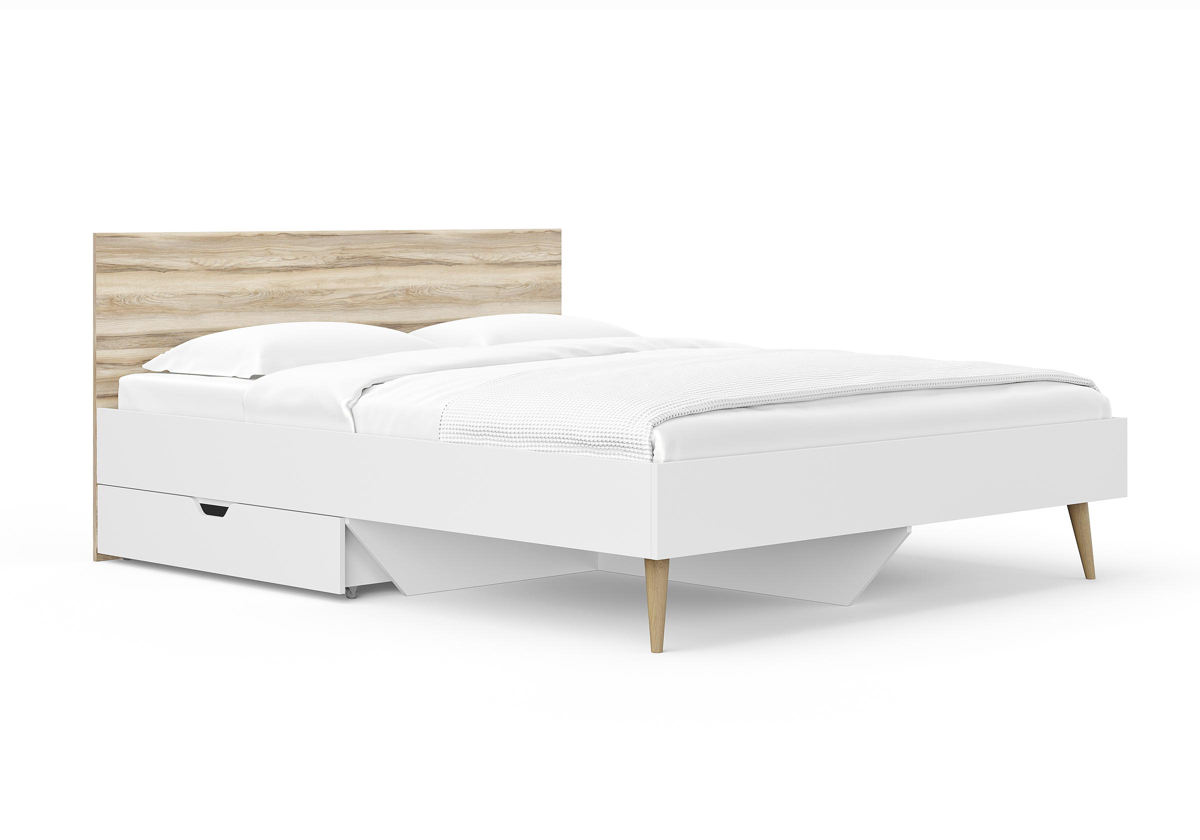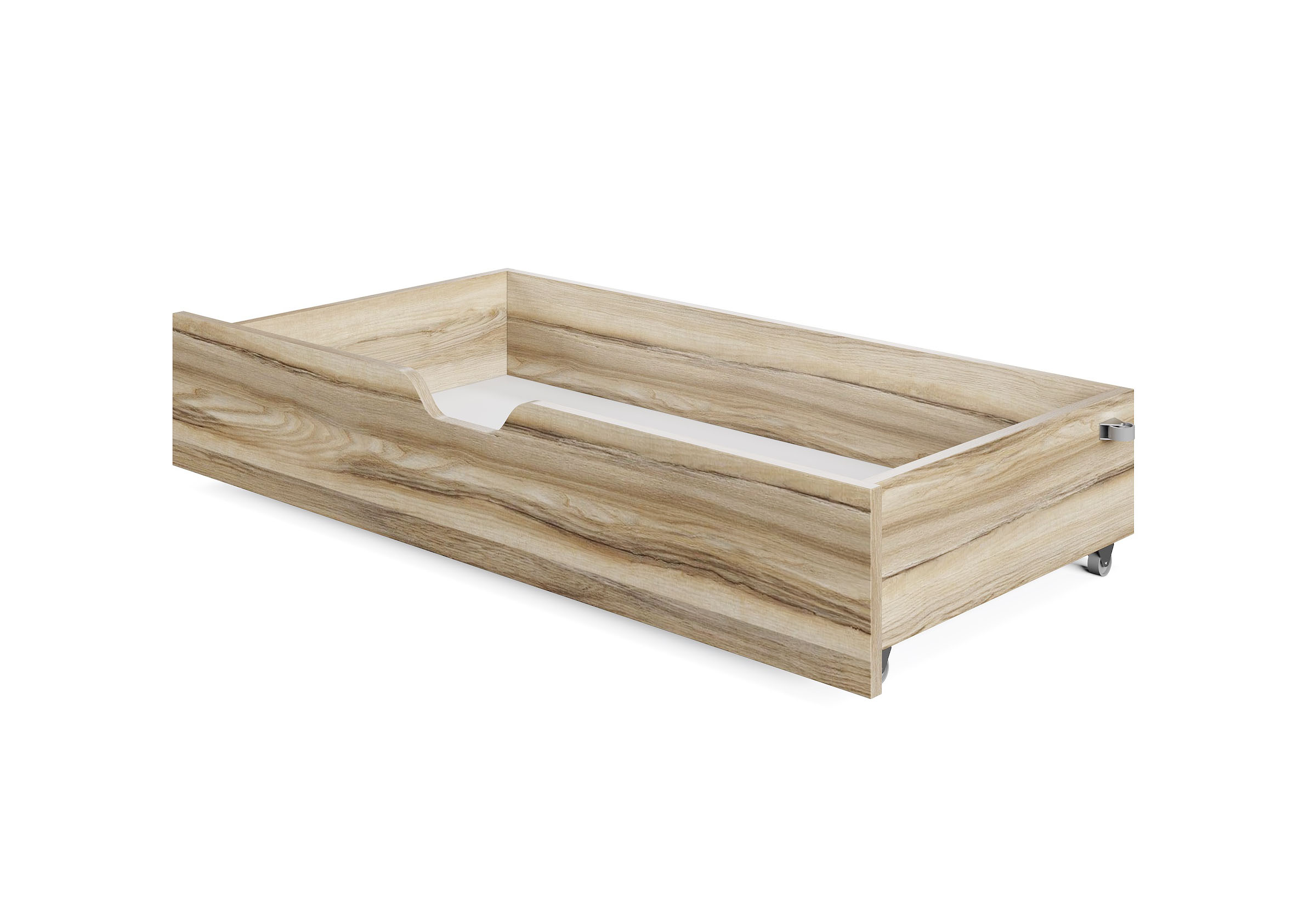 К детской кровати ящик не прилагался, заказали этот, под модель Mariana . В пазы кровати встал идеально. Очень удобная выемка и колесики. А главное, уже год и внешнего вида ни ящик ни кровать не потеряли, хоть дети в комнате своей буквально на ушах стоят. Рекомендую!