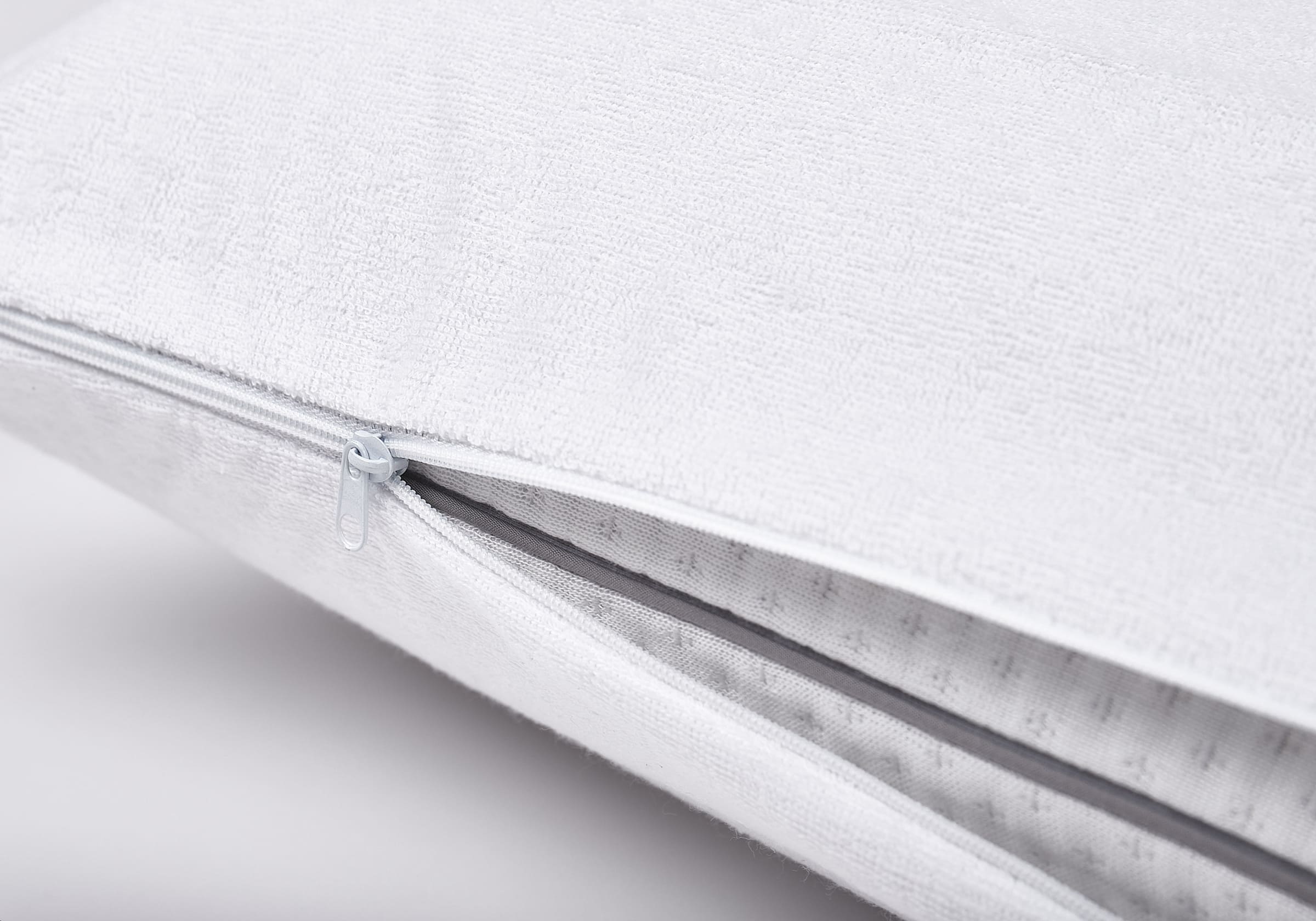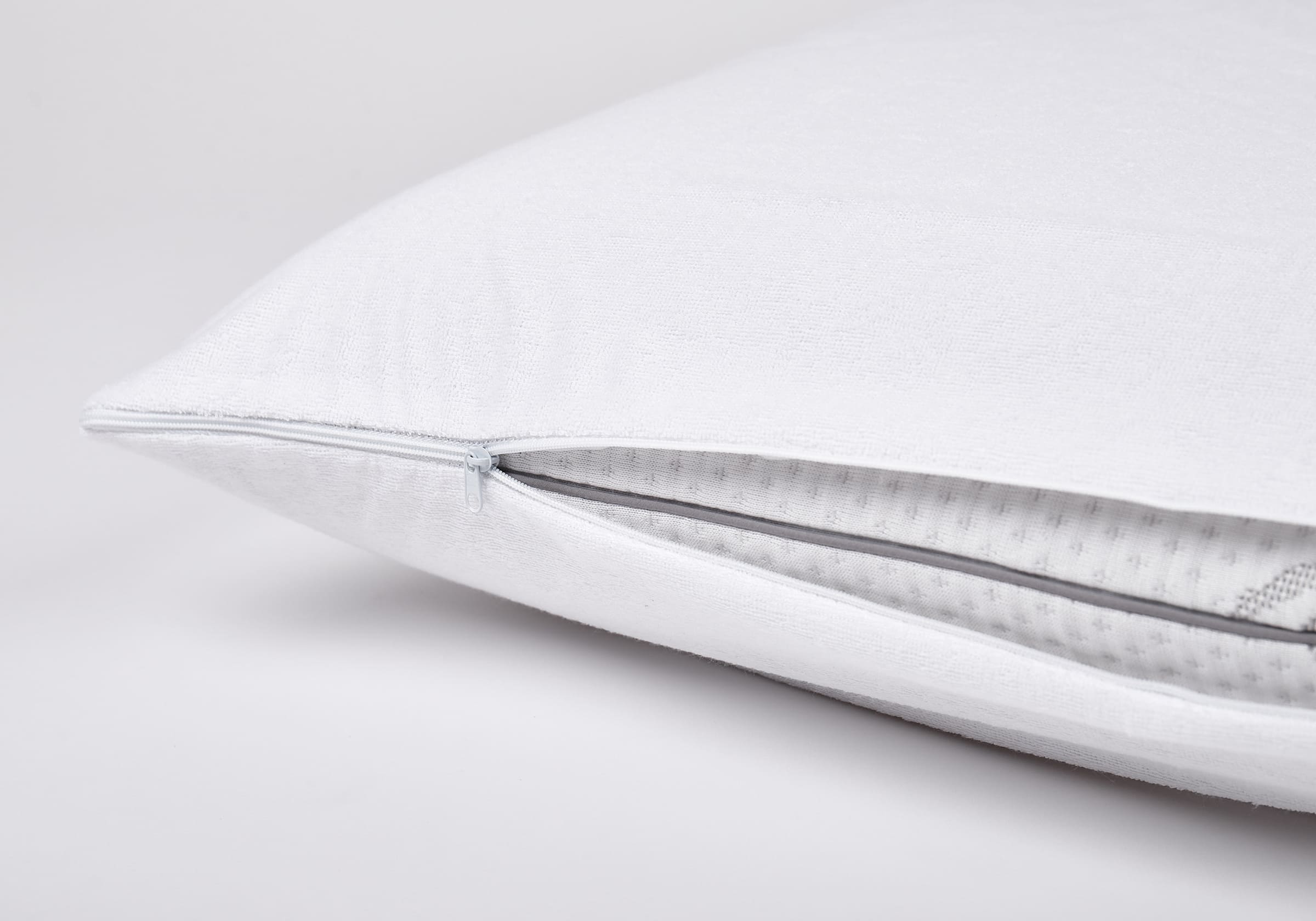 Защитный чехол надежно защищает подушку от механических повреждений, загрязнений, влаги, пылевых клещей. Он обеспечивает высокую воздухопроницаемость, способствуя здоровому сну. Верхняя часть чехла из натурального махрового хлопка. Второй слой - мембрана с мелкими порами, которые позволяют пропускать воздух, но не пропускают влагу.